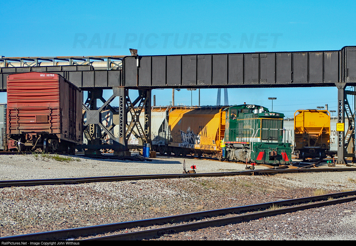 The Beer Railroad: Digging through old photos, it seems that in my youth, I spent lots of time at the "Manny", which was owned by the Anheuser-Busch brewery in South St. Louis. MRS was a neat little industrial operation with a rich history. Showcasing the odd way the MRS yard was laid out, MP15DC #252 switches a few grain loads in the lower yard, no doubt going to the brewery malt house later. The bridge overhead is actually the MRS lead to the underground beer loading docks for the brewery. The St. Louis Arch can also be spotted in the background.