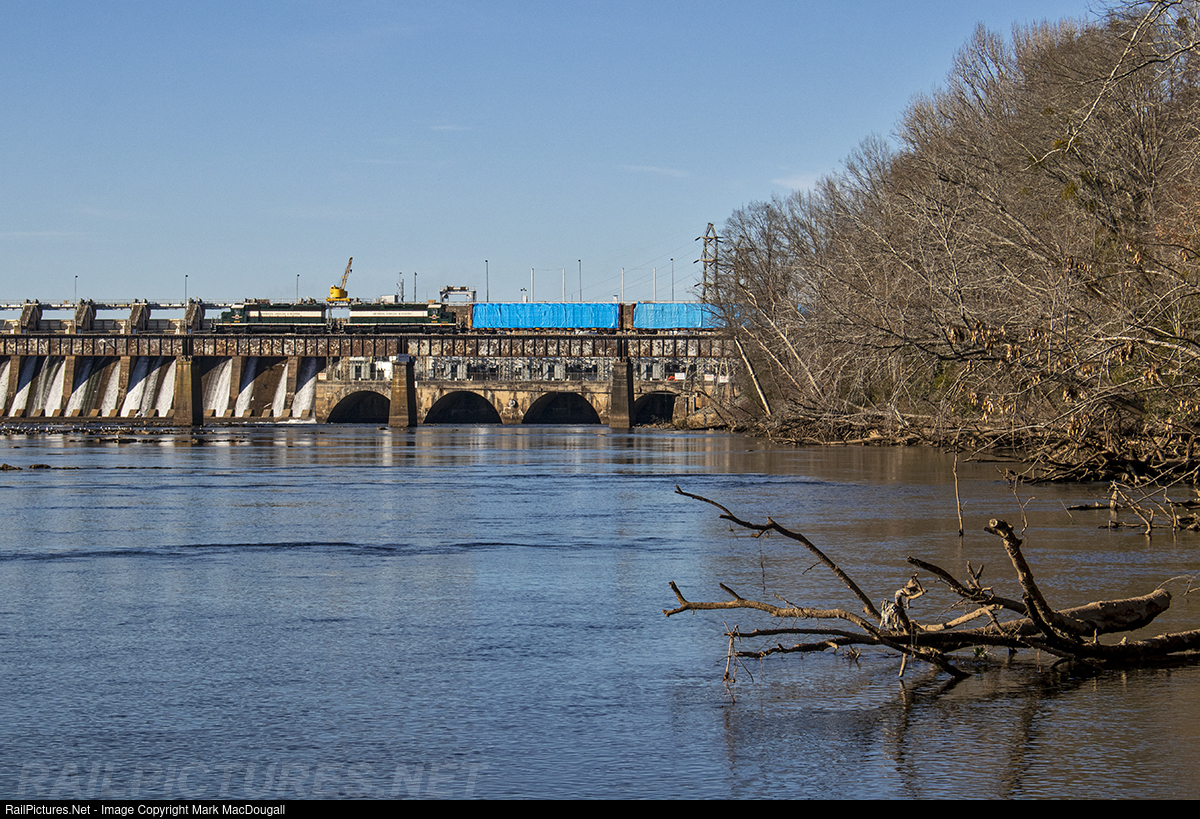 The 300 job crosses the Pee Dee River on their return trip westbound.