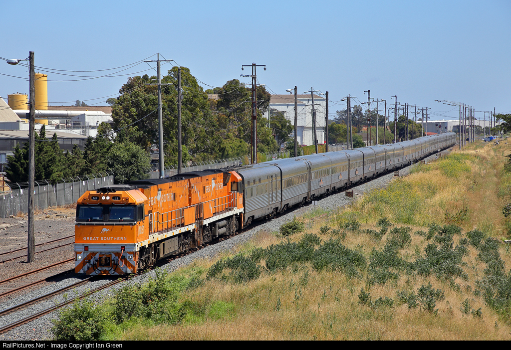 Great Southern train 2TA8 from Brisbane to Adelaide rolls through Brooklyn behind NR31-NR30.