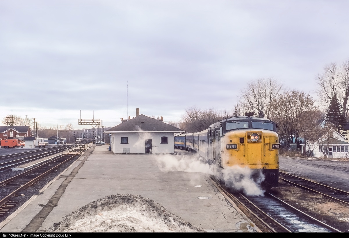 Exactly thirty-seven years ago, The Ottawa section of a VIA train from Toronto prepares to leave Brockville, Ontario after the Montreal section has departed. Change is in progress at Brockville, with a new station track being installed, and a new cantilever signal being erected to replace the signal masts in the distance.