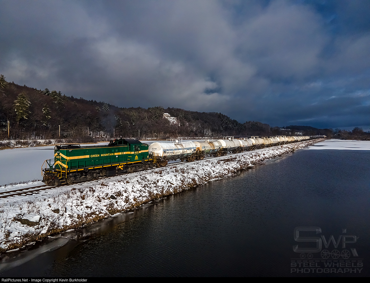 A full month after being pulled out of winter hibernation, the Green Mountain Railroad Alco RS-1 is still going strong in weekly freight duties for Vermont Rail System. The Alco was reactivated following a power shortage on the VRS and has been in service as the Bellows Falls Switcher, symbol DASW, Monday through Friday and weekend days as necessary. On December 28, 5 minutes of sunshine and a rare morning switching of GMRC Riverside Yard coincided to provide some pristine lighting on the 70-year-old veteran Also.