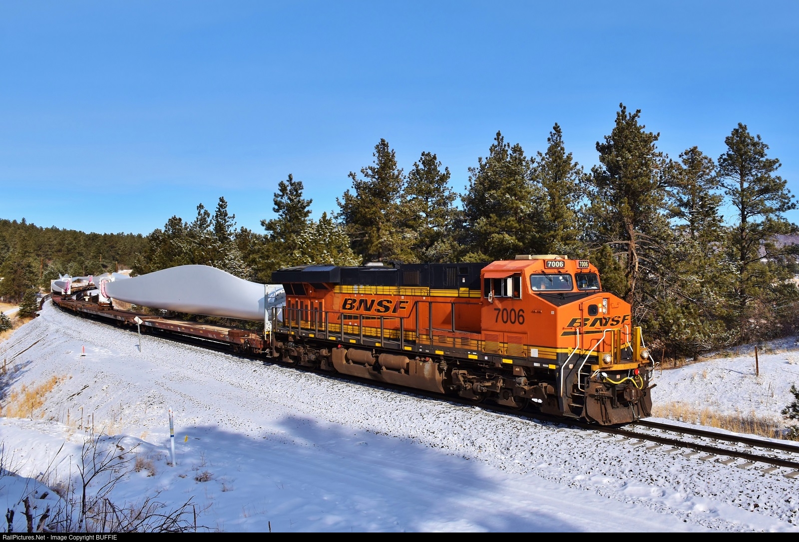 BNSF 7006 (ES44C4) has solo duty as it leads a windmill blade train through the Black Forest area of Larkspur, Colorado.