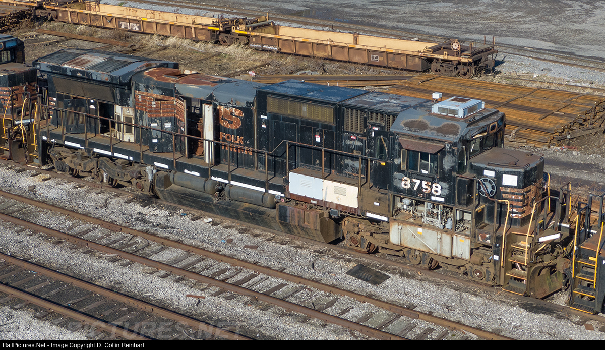 | Built in 1992 by General Electric, this C40-8 is a shadow of its former self. Retired and sold to Cresson Steel in 2016, 8758 has been parted out and awaits it fate. |