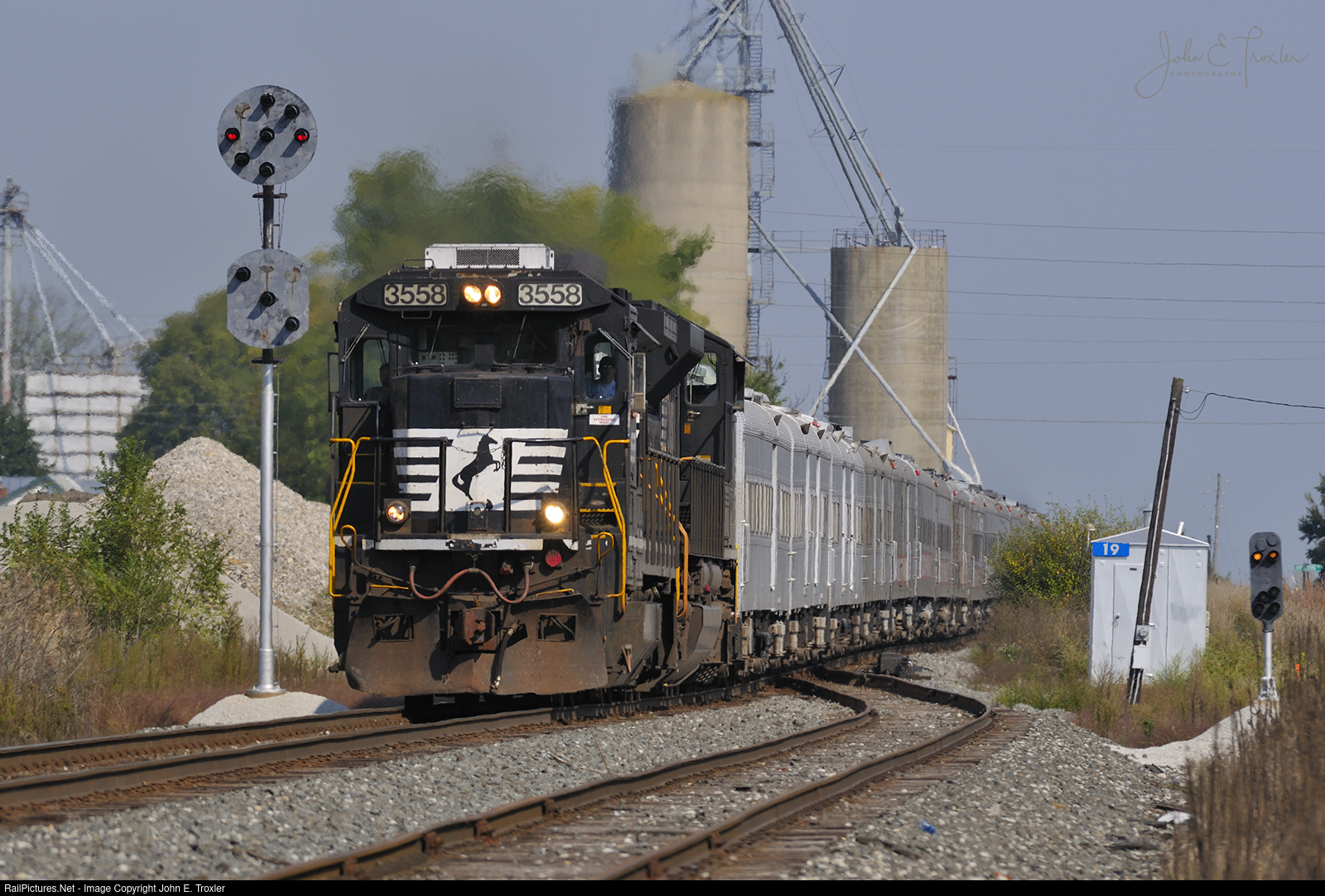 Southbound NS Ringling Brothers & Barnum Bailey circus train enroute from Grand Rapids, MI to Indianapolis, IN travels Norfolk Southern's Marion Branch during a beautiful September day. There are a few nevermores in this photo, no PRR position signals on the Branch, no RB&BB circus trains, and no B32-8 locomotives existing on the NS.
