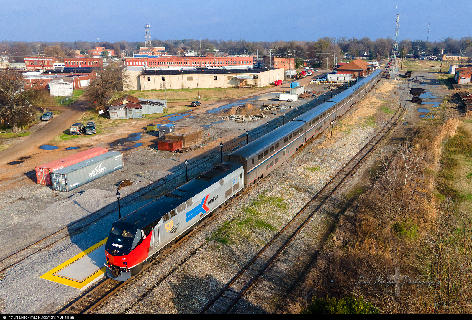 The last day of 2021 was a good one! The Phase I heritage unit came down on train #59 (City of New Orleans), and I just so happened to be going to New Orleans for the Sugar Bowl. Here's a shot of it stopped at Greenwood, right after the sun had broken through the morning clouds.