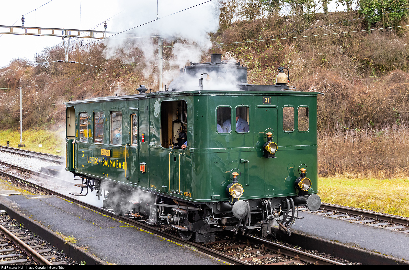 After about 2 years standstill due to the Covid-19 crisis, the unique steam railcar CZm 1/2 # 31 of SBB Historic, maintained and operated by steam group Zürich (VDZ Verein Dampfgruppe Zürich), made a transfer run with passengers from Zürich via Oerlikon-Regensdorf-Wettingen-Mellingen-Othmarsingen to Brugg AG, for a charter run the other day. Now the railcar is entering Mellingen to take water. This vehicle with 30 seats, a mail compartment and 45 km/h maximum velocity, was built in 1902 by Maschinenfabrik Esslingen/Germany for the Nordostbahn. In 1906 already, the CZm was sold to the Uerikon-Bauma-Bahn and got a new boiler. Withdrawn in 1948 and stabled by the SBB, operational again since 1980 as historic vehicle, since 2005 operated by VDZ.