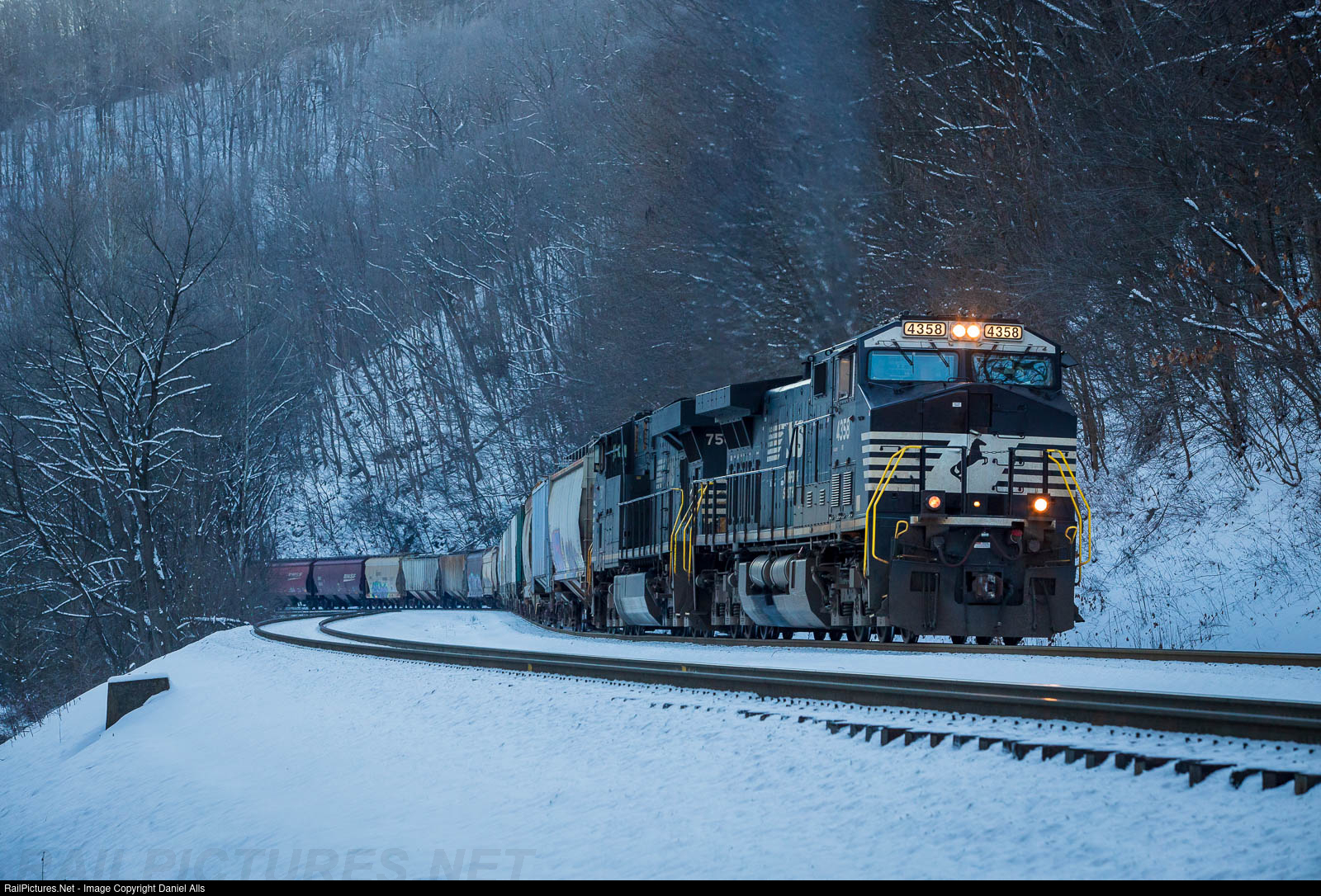 | NS 353 gets going again after a short stop in Ingleside, Wv, just short of the signals at Blake. |