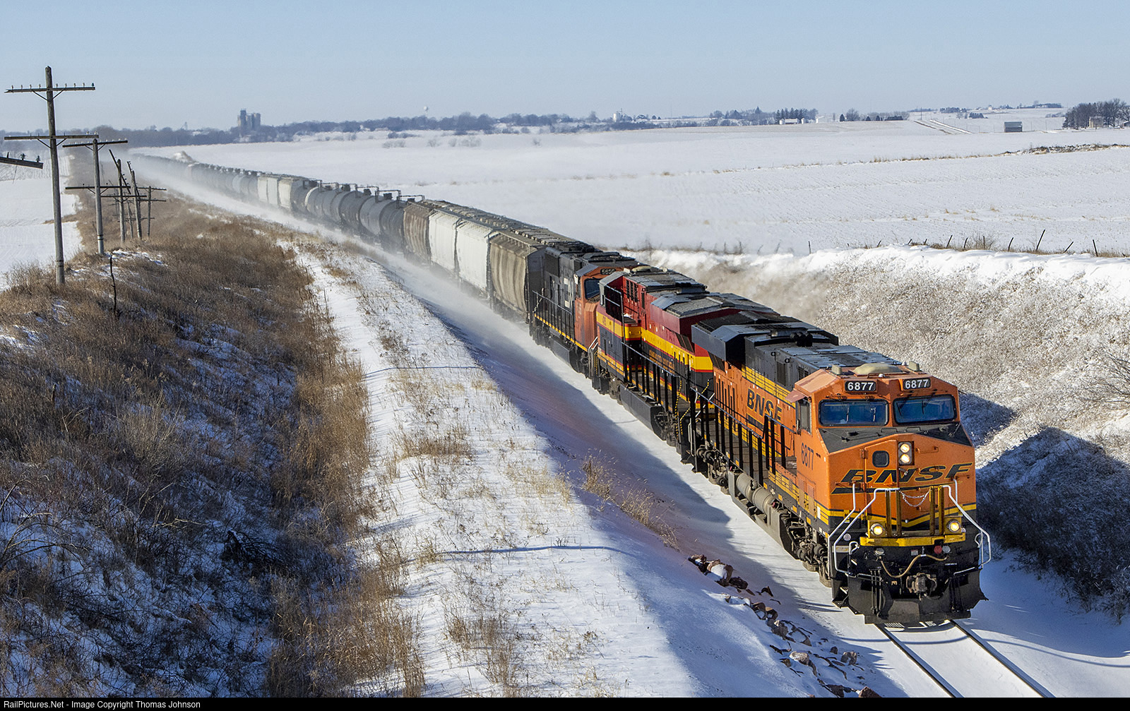 RailPictures.Net Photo: BNSF 6877 BNSF Railway GE ES44C4 at East of Winthrop, Iowa by Thomas Johnson