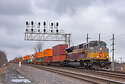 As CSX train I166 notches up out of New Baltimore intermodal yard, the sun just peaks over the horizon shedding golden morning light of the leader of the train, that being Canadian Pacific's newest locomotive fresh out of the paint shop. Being its first revenue run, and upon first observation, this locomotive was painted to honor the shipping agreement between CP and International shipping company Hapag Lloyd at the Port of Saint John. The train made its way to Buffalo and soon changed symbols to CP train 142 bound for Brownville, Maine