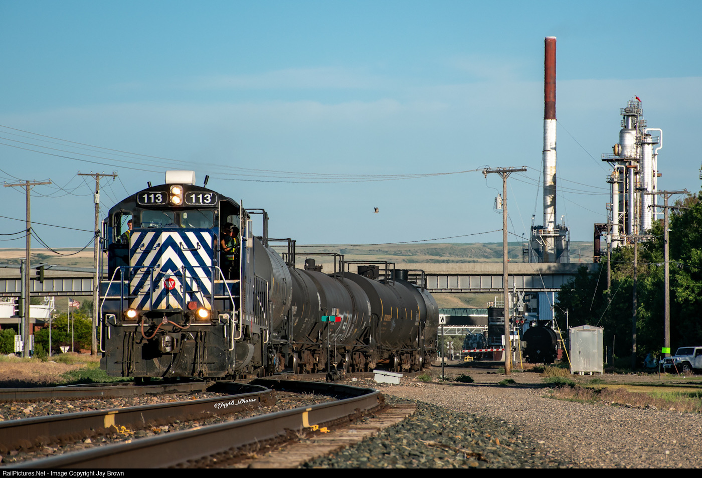 | With an elderly GP9 for power, the Laurel switcher heads back towards Yard limits after servicing the CHS Laurel Oil Refinery for a little over an hour. |