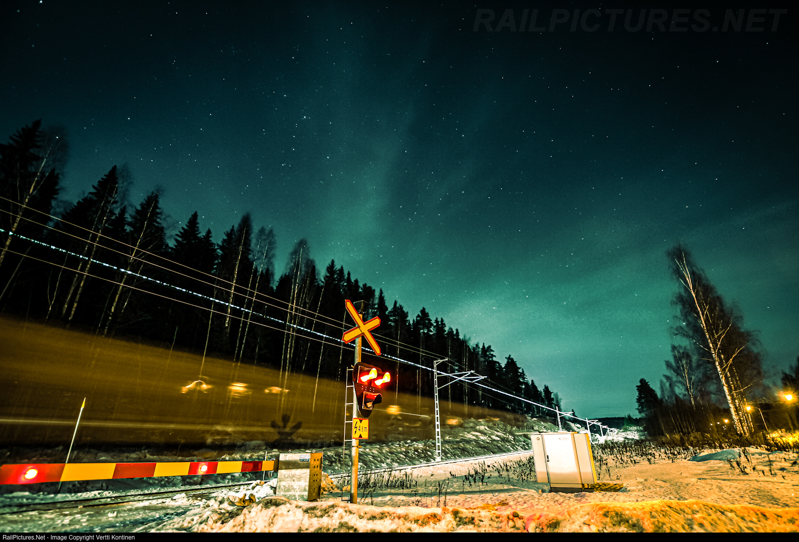 | A really strong geomagnetic storm hit earth this weekend making auroras highly visible in Central Finland. This got me to Vihtavuori, where an amazing northern lights show was waiting for me. Sadly the beautiful shapes of the "tail of the fox" as finns like to say, appear soft due to the long expousure, but I still like how the image turned out with the overhead wire being illuminated by the sparks from the pantograph of the locomotive |