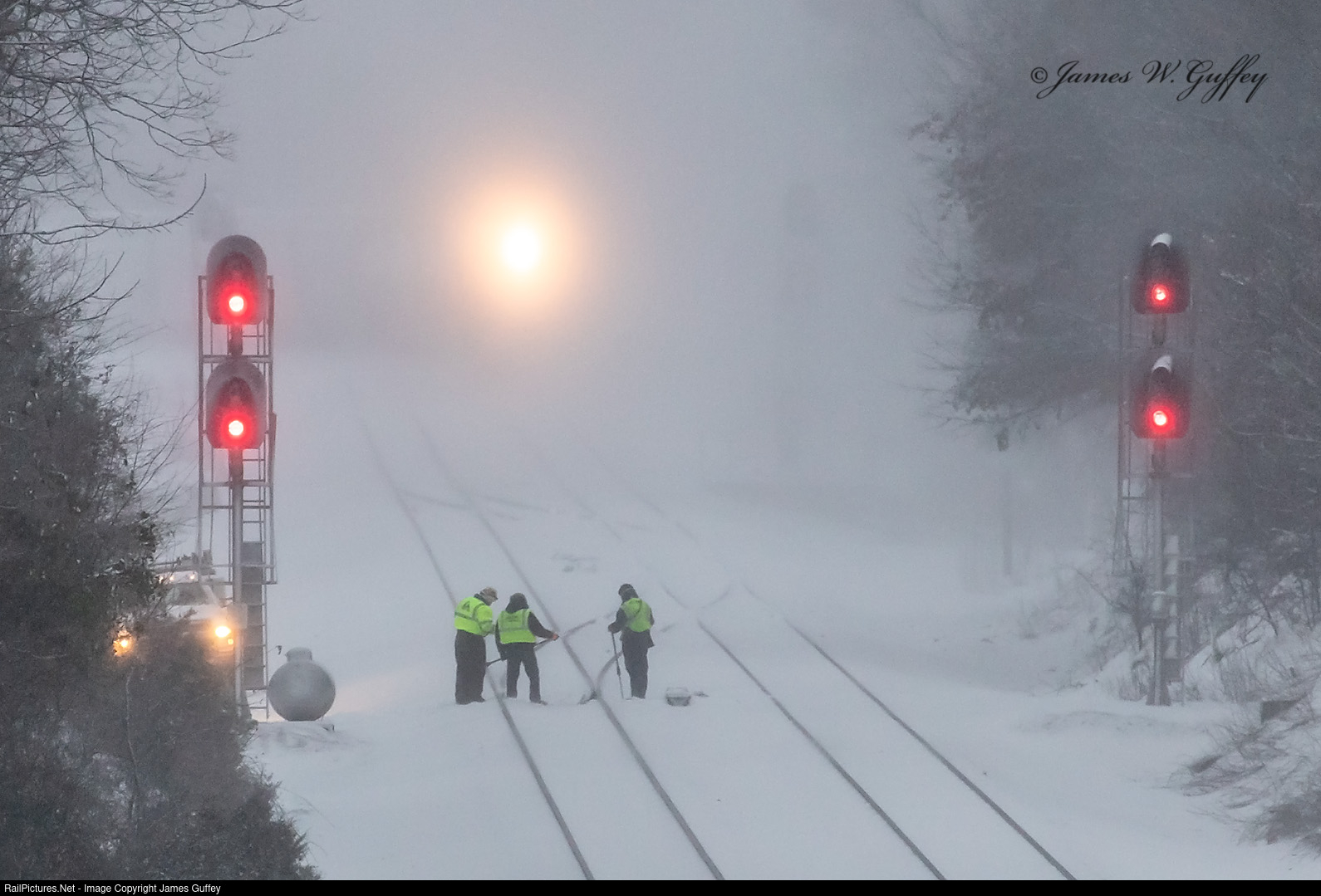 The track crew and a P78 crewmember are battling the elements as they try to get the crossover lined at Worley so P78 can go around 238 and take the catch of the day to Spartanburg.