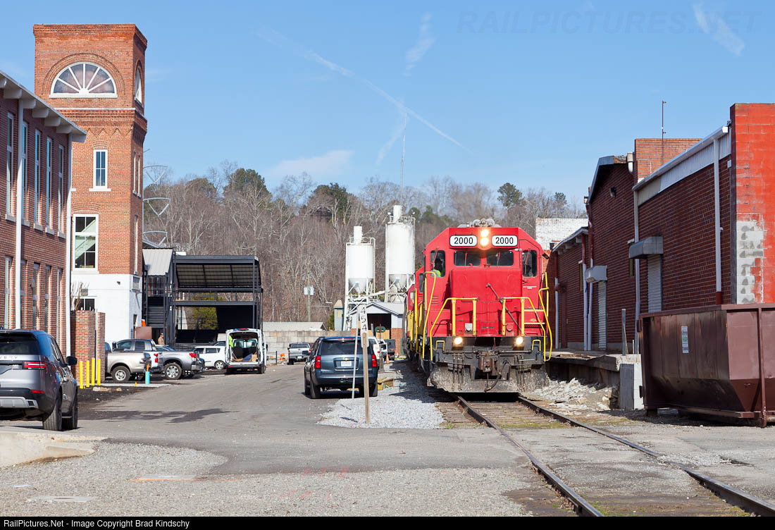 | GNRR's Friday Southbound road freight rolls through The Mill on Etowah. Originally the "Canton Cotton Mill" that produced denim fabric, the redeveloped buildings feature a shopping mall, restaurants and a brewery in addition to hosting festivals and small concerts. |