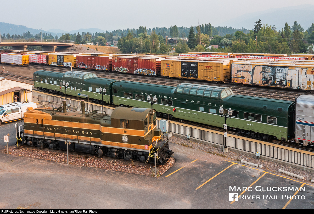 Northern Meet. On August 4, 2021, Webb Rail's former Northern Pacific Railway Budd built Pullman dome/sleeper 313 (WEBX 801044) and former Northern Pacific Railway Budd built dome/coach 549 (WEBX 801045) were holding the markers on Amtrak Train 8 (Empire Builder) when it made the station stop in Whitefish, Montana. Next to the platform on static display is former Great Northern EMD NW3 181, the sole survivor of 7 units of this class produced. This engine came to Whitefish subsequent to a second life with Anaconda Aluminum. More on the Webb Rail fleet at www.webbrail.com