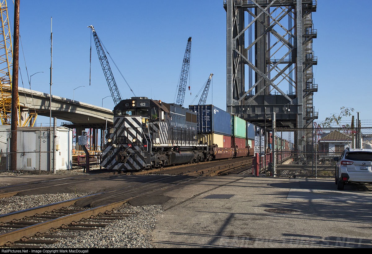 YPBN15 brings the rear portion of an outbound BNSF intermodal over Badger Bridge, where they'll clear up to allow a boat to pass. The train originated on the LAXT Loop track, once the bridge is re-lowered they'll shove the train onto the Pier W Lead, then run to Long Beach to pick up the head end of the train. After bringing the second cut to Pier W, they'll move onto their next assignment. The structure to the right of the bridge houses the PHL dispatching office.