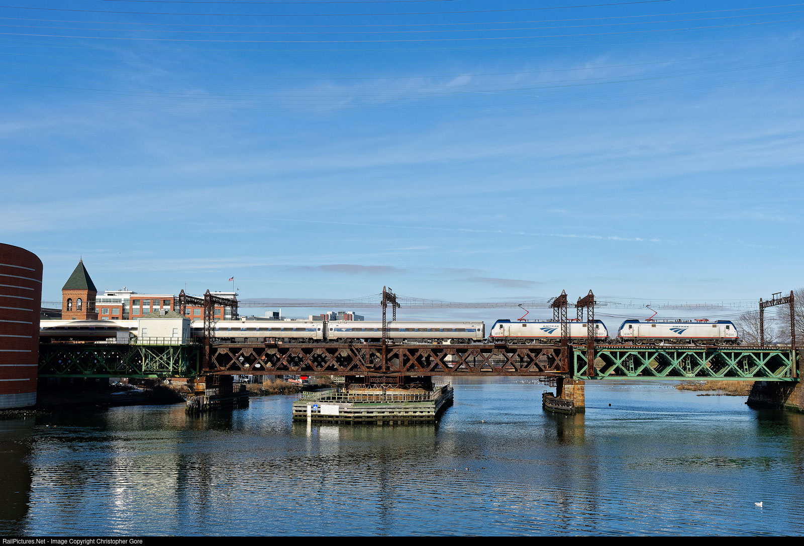 ACS-64 614 and 617 lead train 54 Vermonter across Walk Bridge.