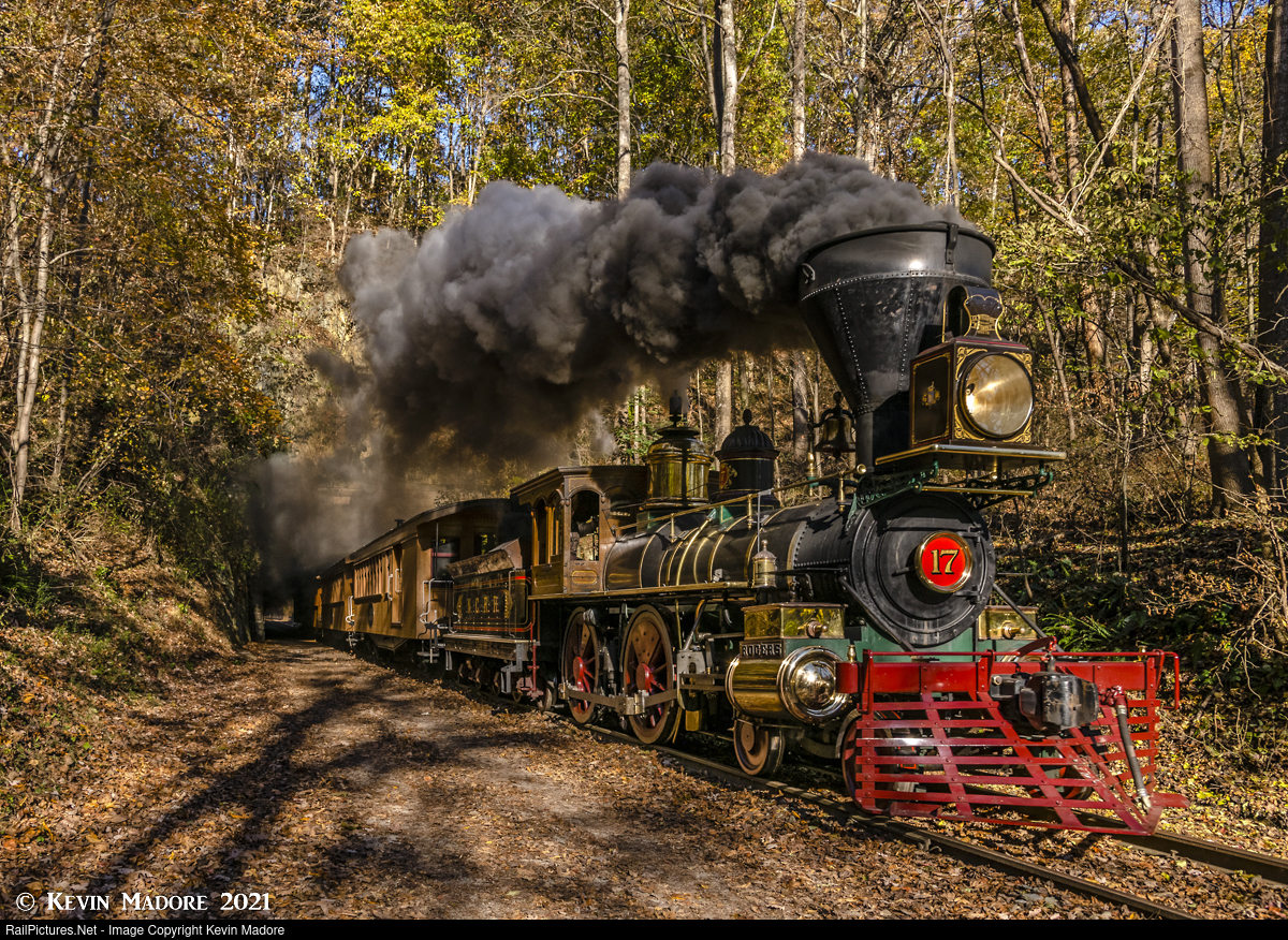 After lying dormant for roughly 20 years, the tracks through this nearly 200 year-old tunnel were recently re-opened by the new Northern Central Railway, which is a tourist railroad operating out of New Freedom, PA. Unlike most steam tourist lines in the US, which typically use historic freight locomotives built 75-100 years ago and whatever passenger equipment they can acquire, the Northern Central decided from the very beginning to model their operation after the Civil War era railroad that originally operated on this right-of-way. Since there were no Civil War era locomotives left that were still operable, that business plan left them no choice but to build a brand new engine and consist, which would be relatively faithful representations of the historical equipment. Accordingly, York 17 was commissioned to the Kloke Locomotive Works, of Elgin, IL, which had already successfully built one such engine using the plans and patterns for the replicas at the Golden Spike National Historical Park. The York 17 was delivered to New Freedom, PA in the spring of 2013, and has been operating there ever since.