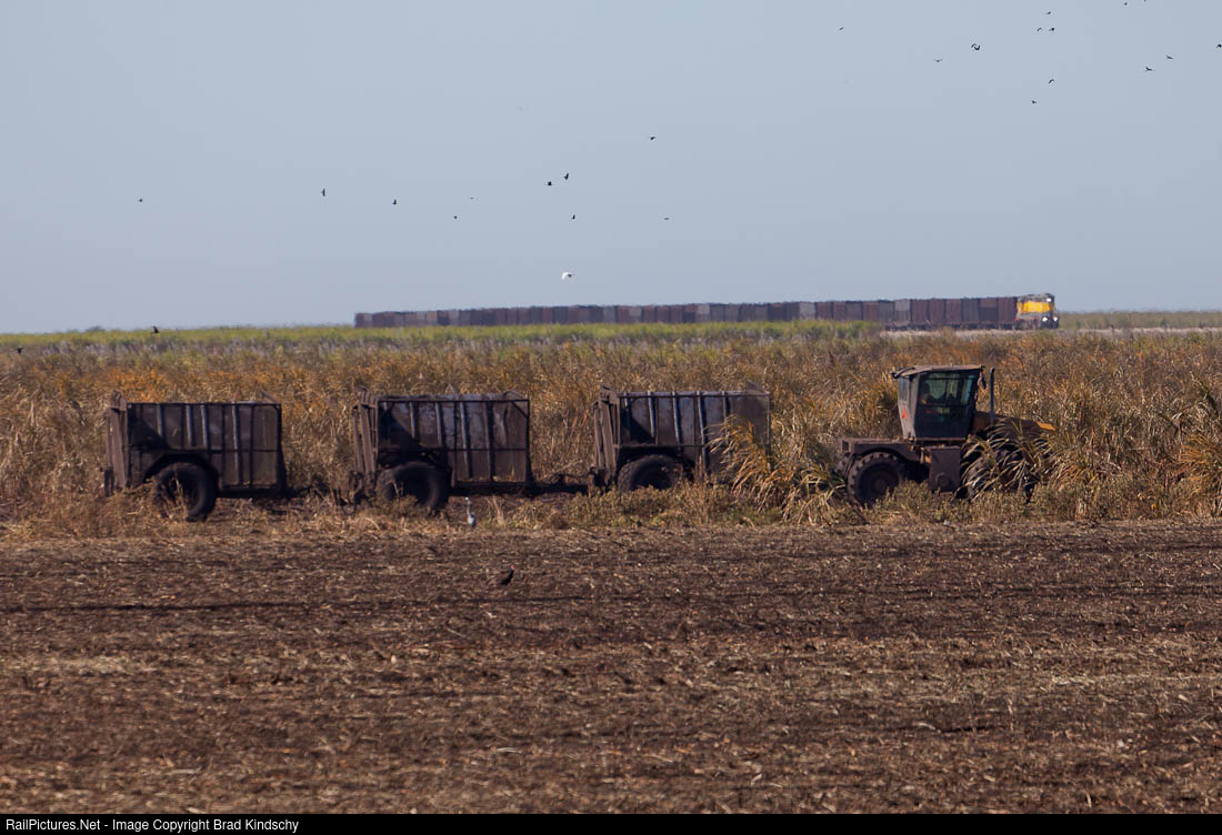 | Depicting multiple modes of transporting harvested sugar cane. Bryant Turn #1 heads shuttles empties to the cane fields east of Bryant, where private US Sugar runs will deliver to the loadouts. |