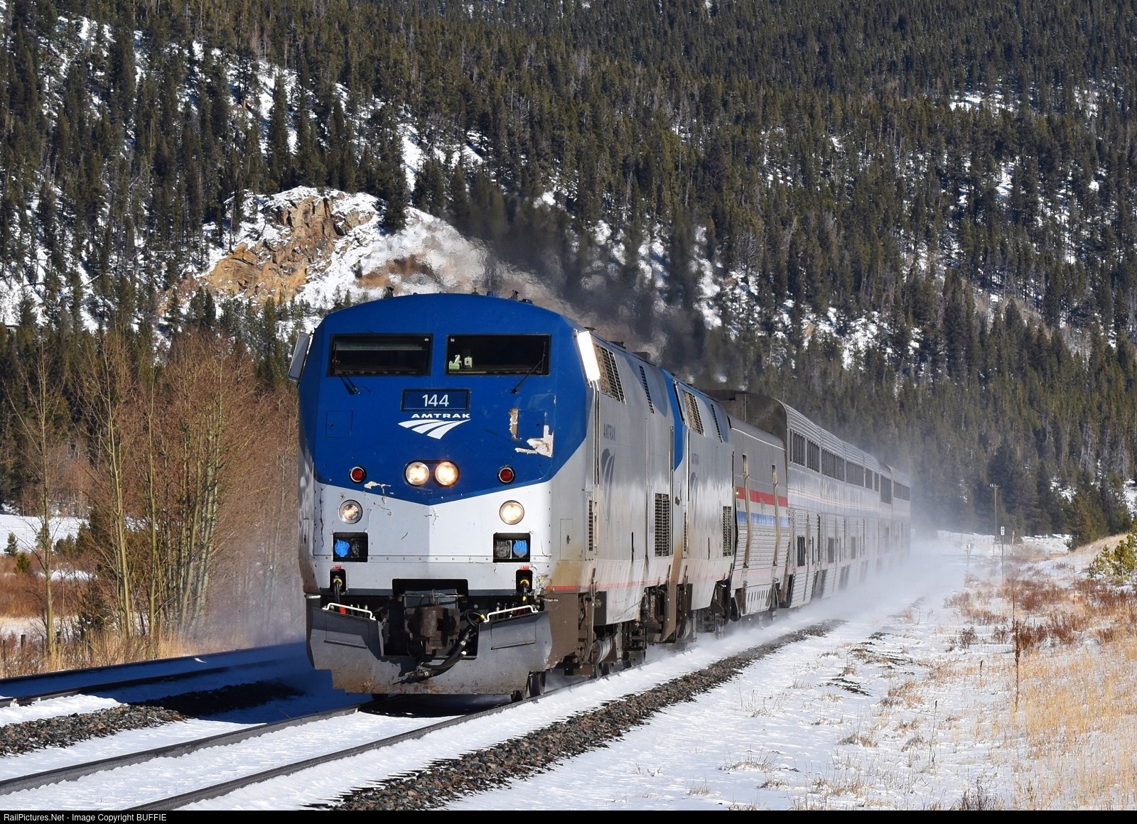 RailPictures.Net Photo: AMTK 144 Amtrak GE P42DC at Tolland, Colorado by BUFFIE