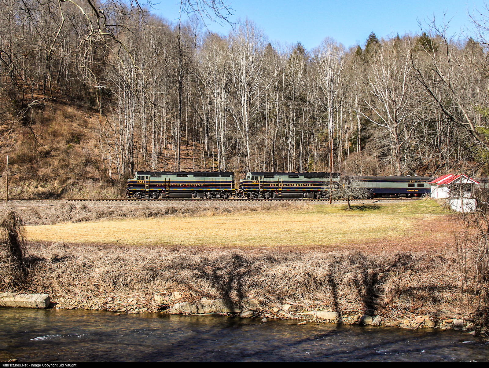 | Southbound executive tour of the former Clinchfield. Good photo location between Haysi and St. Paul are very few and far between. They met NB freight 694 here.. |