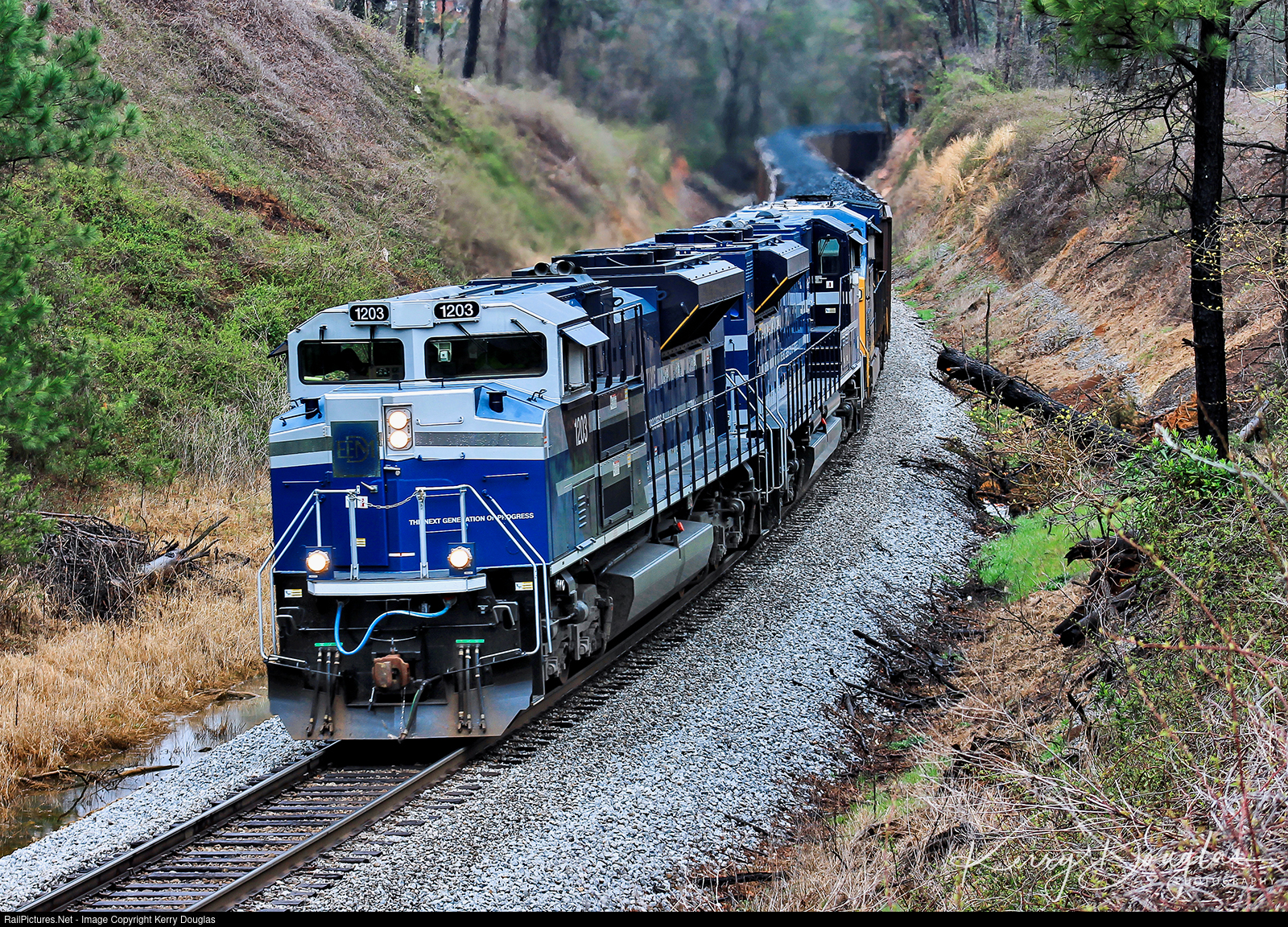 The rain stopped for a brief moment as CSX N122-29 (Corbin,KY-Newberry,FL/FNOR) is easing through the s-curve in the rural North Georgia Community of Rydal, GA. At the time CSX were leasing two sets of SD70Ace’s from Progress Rail to see if the 3rd Generation ACe’s performance in revenue service and what a perfect way to assign a pair on the Duke Power’s Crystal River coal bucket. Unfortunately, we found out later the ACe’s Demos didn’t hold up to CSX performance standard and were eventually returned to Progress Rail once the lease was up. N122 is on its way to Newberry, FL where the Florida Northern Railroad will pick up the loaded bucket and take it south of the Crystal River Nuclear Plant via of the former ACL West Coast Subdivision.