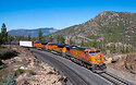 | BNSF trackage rights train H-STOPVO works its way up the mountain as it rounds a curve near Cisco, CA. After shooting the train at Alta, I headed to the next spot where the tracks turned south so I could get light on the nose. Going in completely blind, I followed a path of an underground pipeline up the side of the hill hoping that the shot would be worth it. It was worth it. |