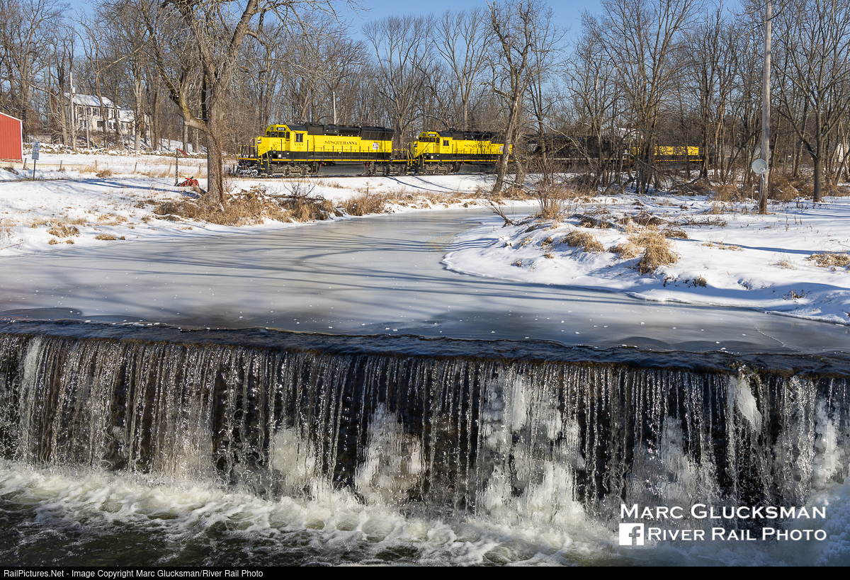 Semi-Frozen Falls. New York, Susquehanna, and Western Railway SU-100 passes through Baird's Farm in Warwick, New York on February 1, 2022. SU-100 left Binghamton, New York in the early morning hours, setting up a daylight run over what is normally nocturnal trackage. Snow was an added attraction, of course, and the sun was very helpful throughout the day.
