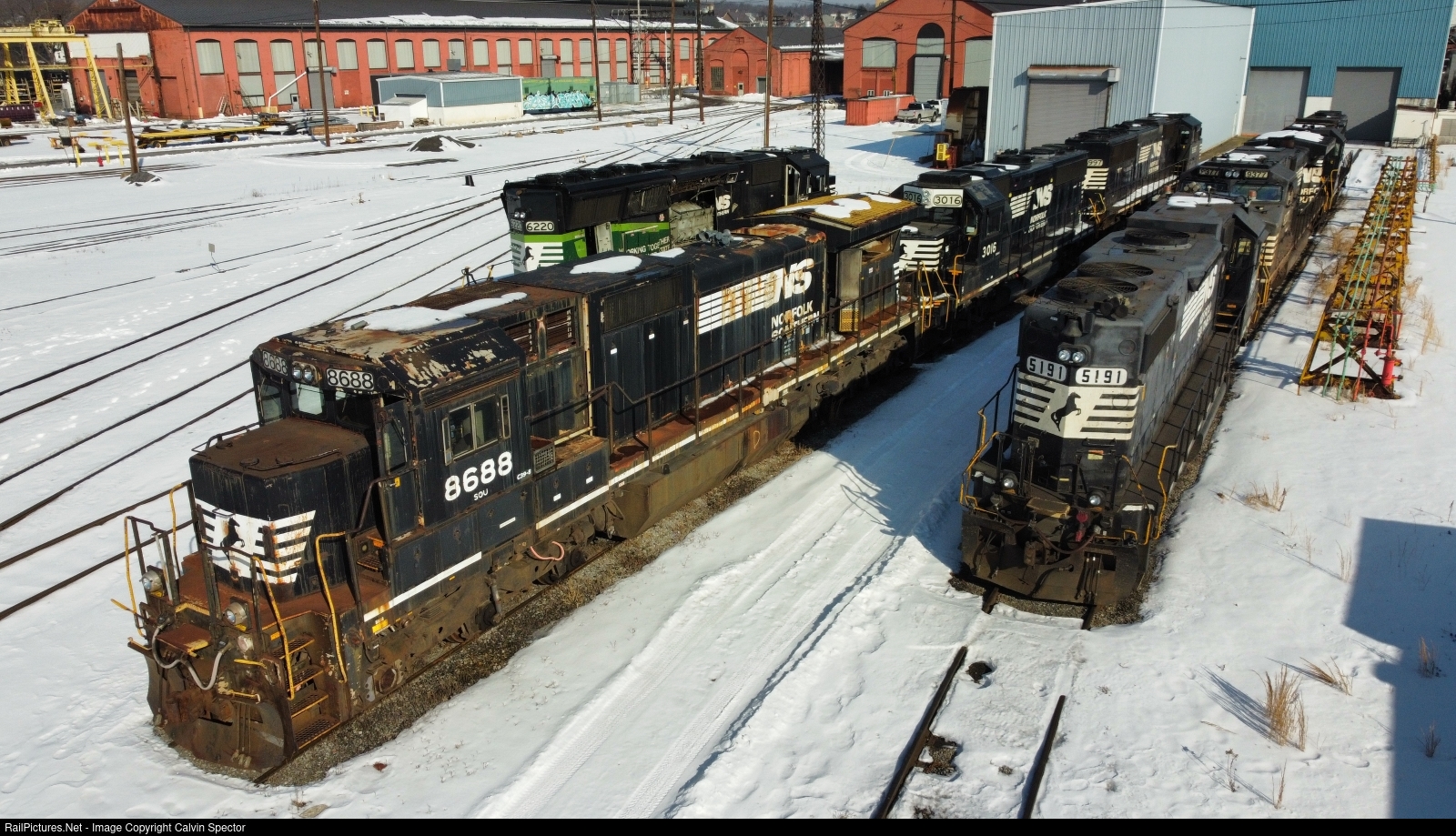 Norfolk Southern's C39-8 test bed sits dead outside their Juniata Shops on a cold winter morning surrounded by a large variety of other equipment that makes Juniata a gem for unique rail photography.