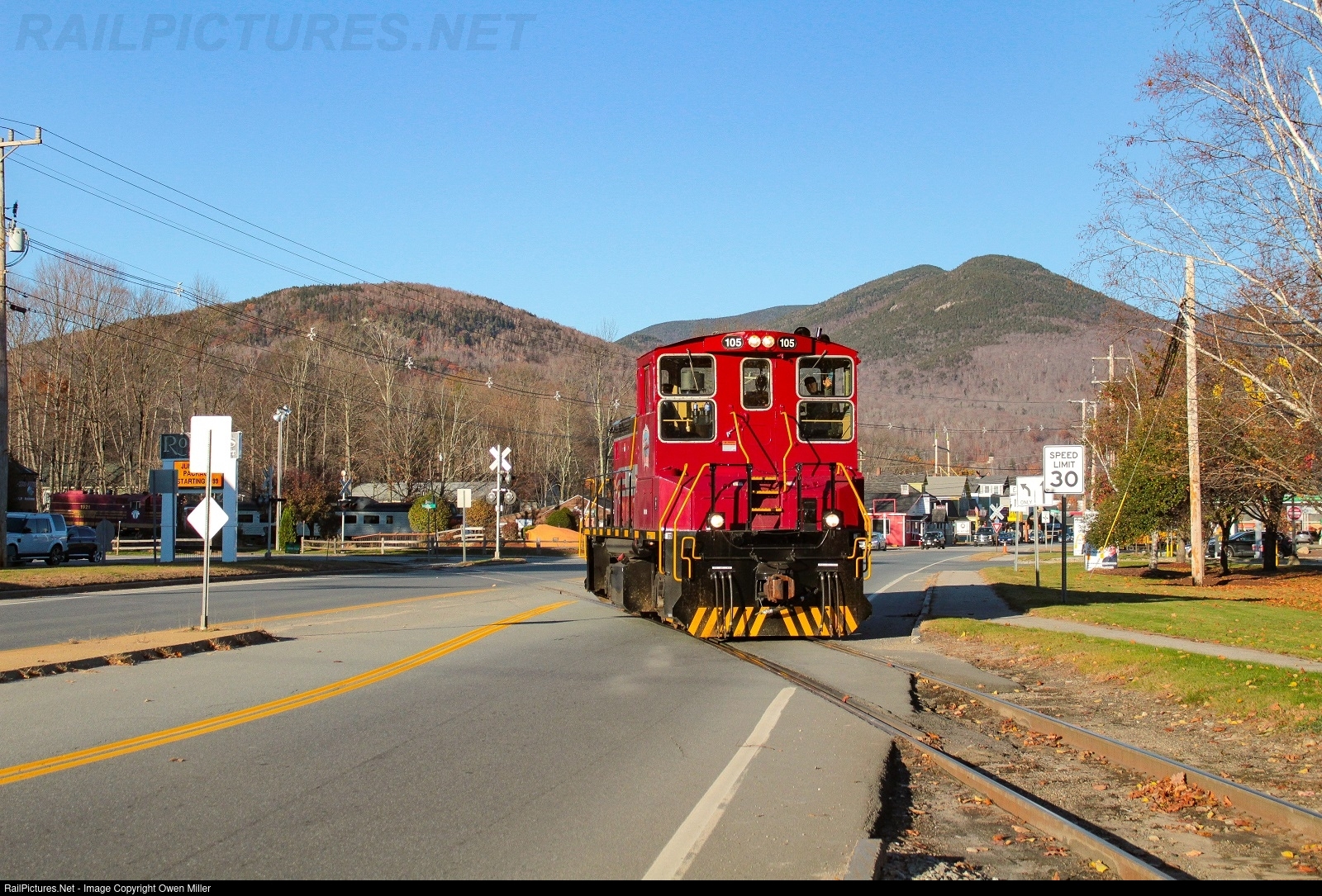 Plymouth and Lincoln has two scenic passenger operations-the Hobo RR in Lincoln, and the Winnipesaukee Scenic in Merideth. Here in Lincoln at the north end of the line, we see the power of the dinner train departing Hobo Junction, in the form of PLLX 105, a former New Orleans Public Belt SW1000, which happens to be the railroads newest engine. I was able to see the move as we had just tied down our motorcars on the east leg of the wye (not pictured)