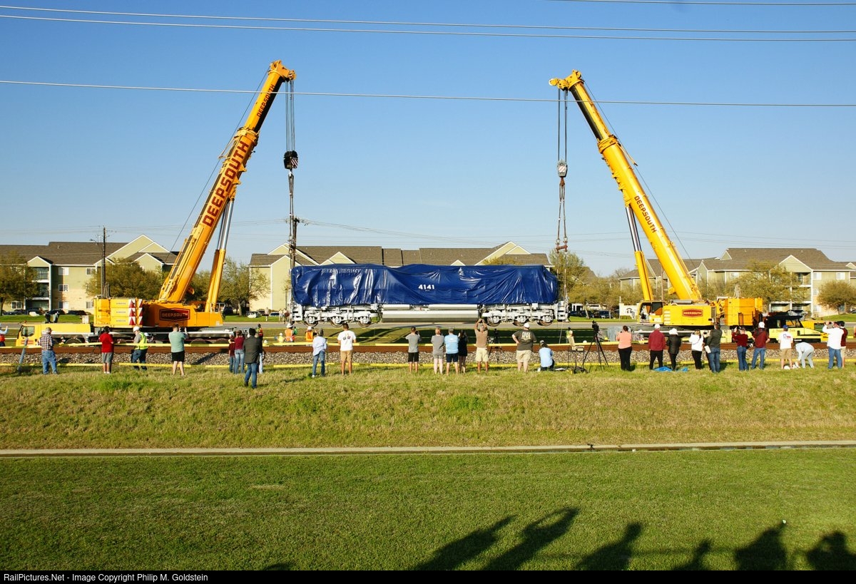 Following the passage of a southbound autorack; the attachment of the lifting cables began, and finally what most came for; the pick began. This is a slow tedious process and requires the skill of experience crane operators. After lifting, and swung over the multiaxle hauler belonging to J. Supor of Harrison, NJ. Yes, J. Supor did the moving. This was rather a moment of pride for me; as Supor has moved many locomotives in around my former area of residence in Brooklyn NY. They moved Southern 385, to Whippany, NY; and moved the "Miracle on the Hudson" the US Airways Airbus A320 plane piloted by Chesley Sullingberger the made an emergency landing in the Hudson River in January 15, 2009 by www.jsupor.com/ While this pick was important publicity wise; any such mishap or damage would not cost the customer (Texas A&M millions of dollars, nor would it cost them lost revenue. Deep South rigs and lifts reactors, catalytic units, fractioning towers, coke drum and many other assorted types of equipment for refineries and industrial firms weighing millions of pounds and costing multi millions of dollars. While an easy pick, with this many people watching, nothing was left to chance, and performed as professionally and safely as if the 4141 was as delicate as an eggshell. Here is where my series ends. The haul was scheduled after the sun had set, and with police escort, sub par lighting, and the fact at tis point I had been awake for 28 hours straight and still had an hour to drive home, I didn't want the trip to be in the dark. Union Pacific Gulf Coast Division Navasota Subdivision MP 74.25 - F&B Siding College Station, Texas, USA 21 March 2021 - 10:30 CDT UP 4141 [EMD / Progress SD70ACe] all images © 2021 ~ Phantastic Pherroequinology / Philip M. Goldstein