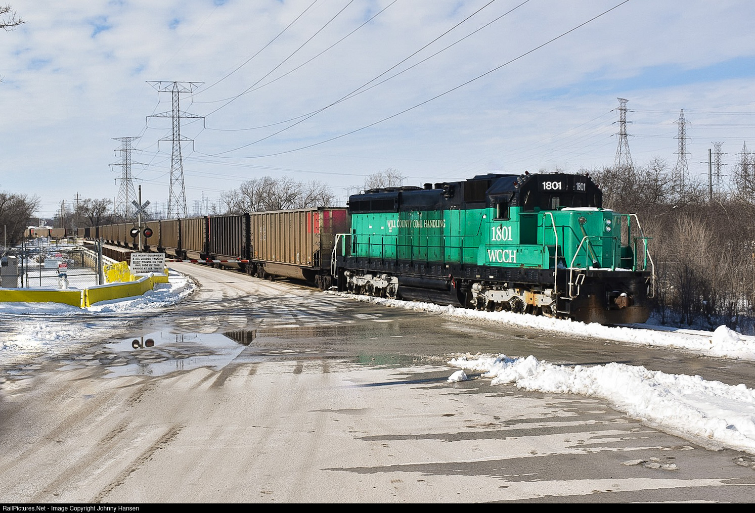 | Rumor has it that the coal fired, Midwestern Generating Station in Romeoville is supposedly going to close down this summer. They own two former Illinois Central SD20 locomotives to haul coal in and out of the plant. WCCH SD20 #1801 brings a cut of 40 loads into the plant. I have been taking every opportunity when it comes to photographing these rare, former Illinois Central work horses hauling heavy coal loads on their last days before the Romeoville plant shuts down. |