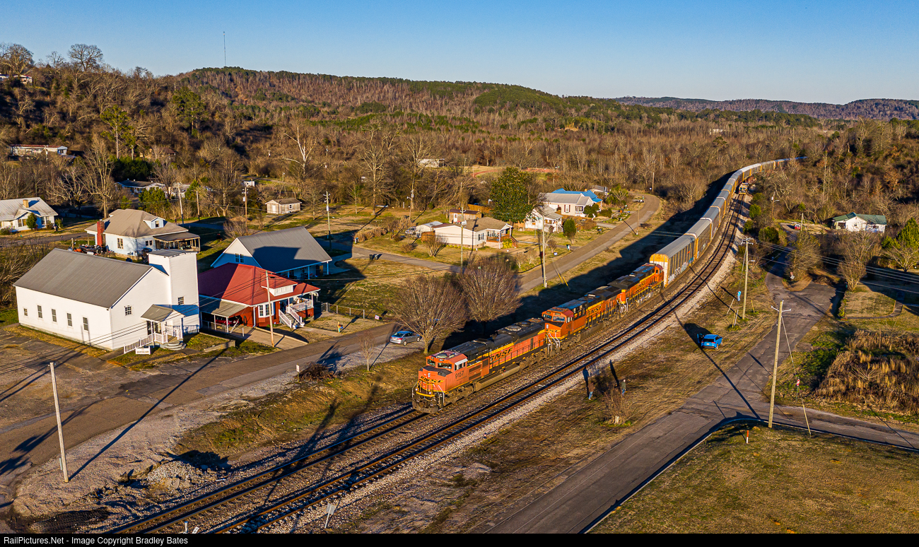 Pictured above is BNSF Vehicle Train V-BIRSBD1-04 heading north passing by where one of those Tornadoes went through that awful day.