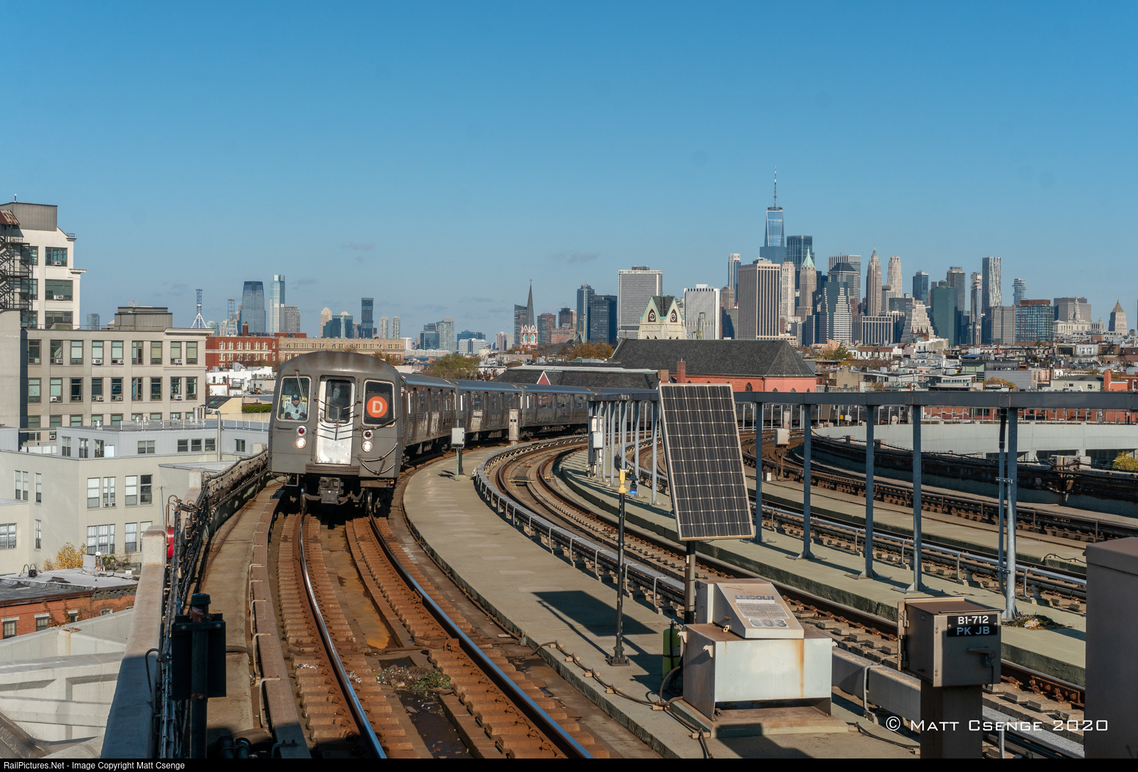 A Church Ave-bound D train approaches Smith-9th Sts Station, with the iconic Lower Manhattan skyline in the background. This past weekend D service was rerouted via the Culver Line in Brooklyn, and F service via the 4th Avenue and West End Lines due to maintenance work on the 53rd Street Line.