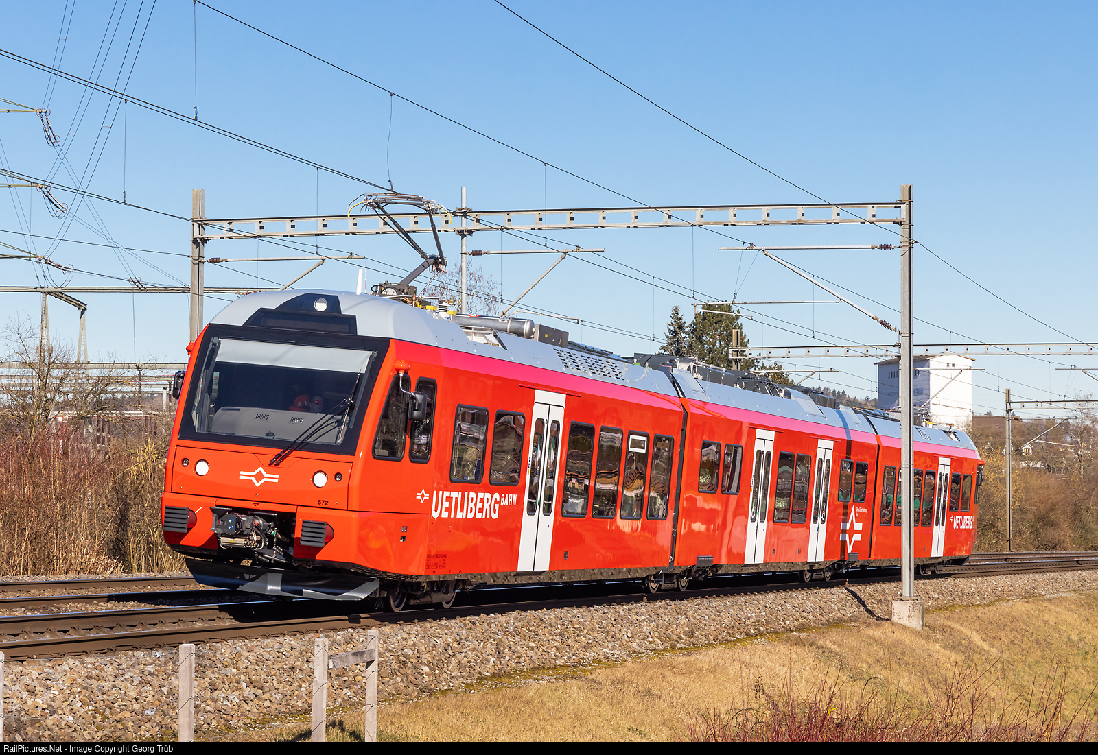 | Brandnew articulated lowfloor train Be 556 # 572 of the Sihltal-Zürich-Uetliberg Bahn (SZU), built by StadlerRail, on the transfer run from the commissioning centre in Erlen to Zürich Giesshübel. |