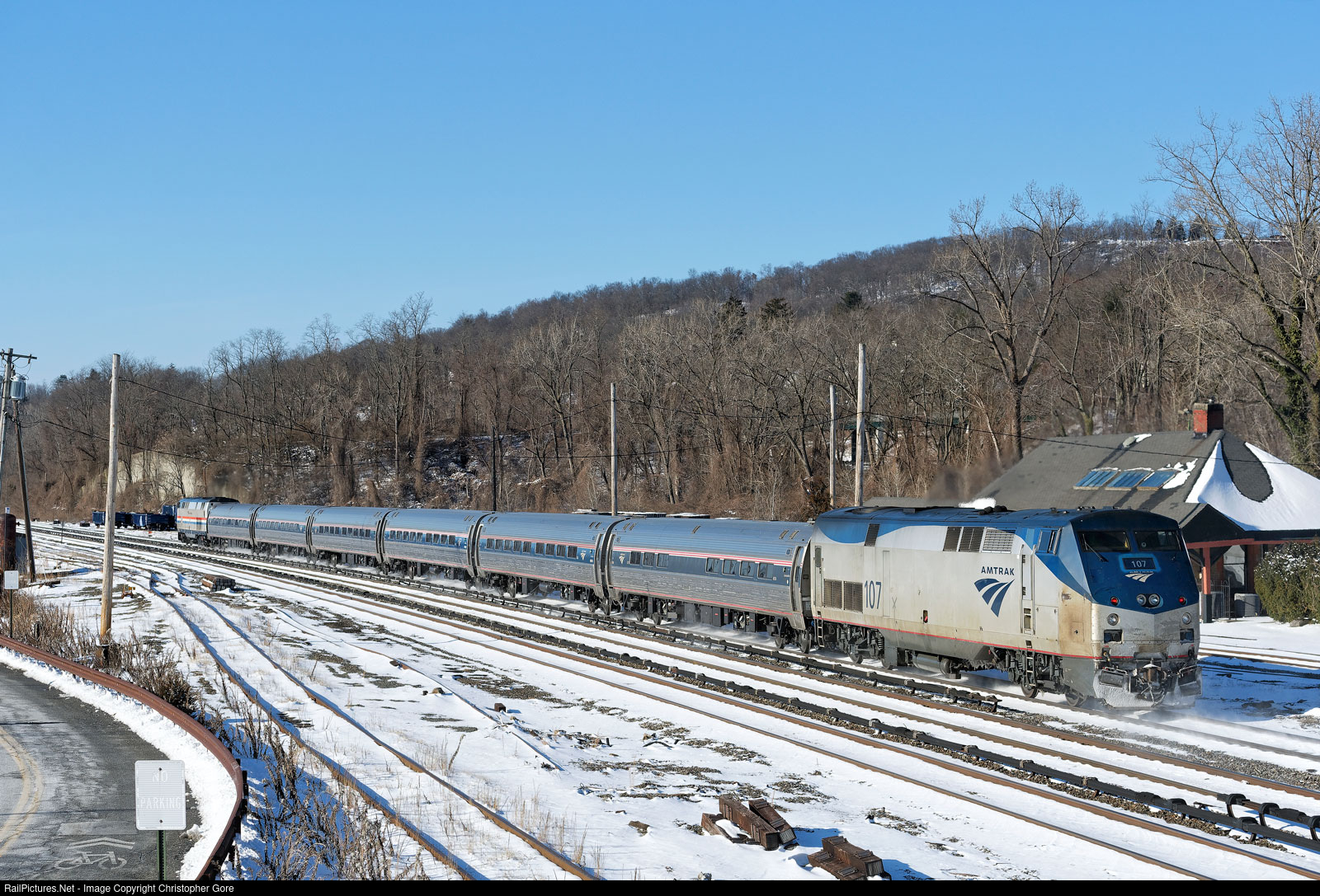 RailPictures.Net Photo: AMTK 107 Amtrak GE P42DC at Croton-on-Hudson, New York by Christopher Gore
