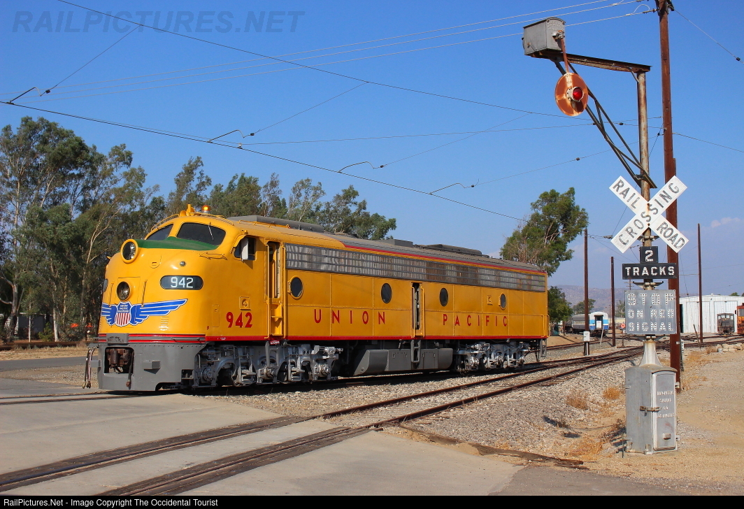 With a day's run of excursions complete, #942 is heading down to Barn 4 for the night, passing one of the active wigwags. OERM is now known as Southern California Railway Museum.