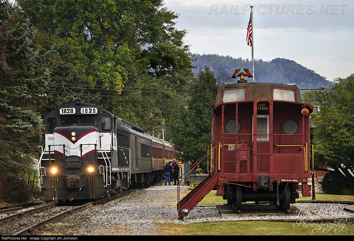 Everett Railroad GP16 1828 waits at the Roaring Springs station to begin the first excursion of the day. EV 1828 began its railroad service in 1952 for the Seaboard. On display is a PRR caboose 477908 that dates back to 1942.
