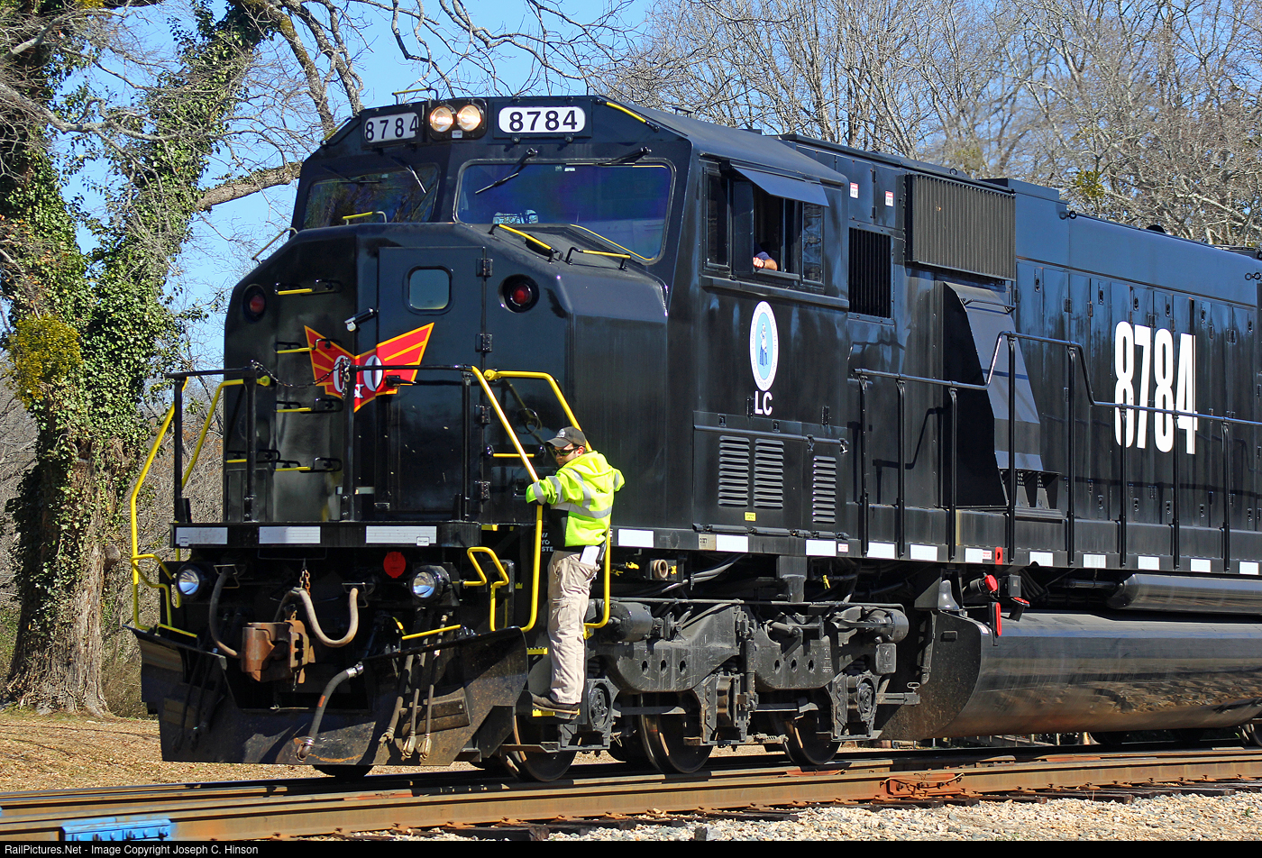 | L&C Train 12 crew runs around their train in Richburg, SC. L&C SD60M #8784 was built as Conrail #5567 in 1993, to CSXT #8784. |