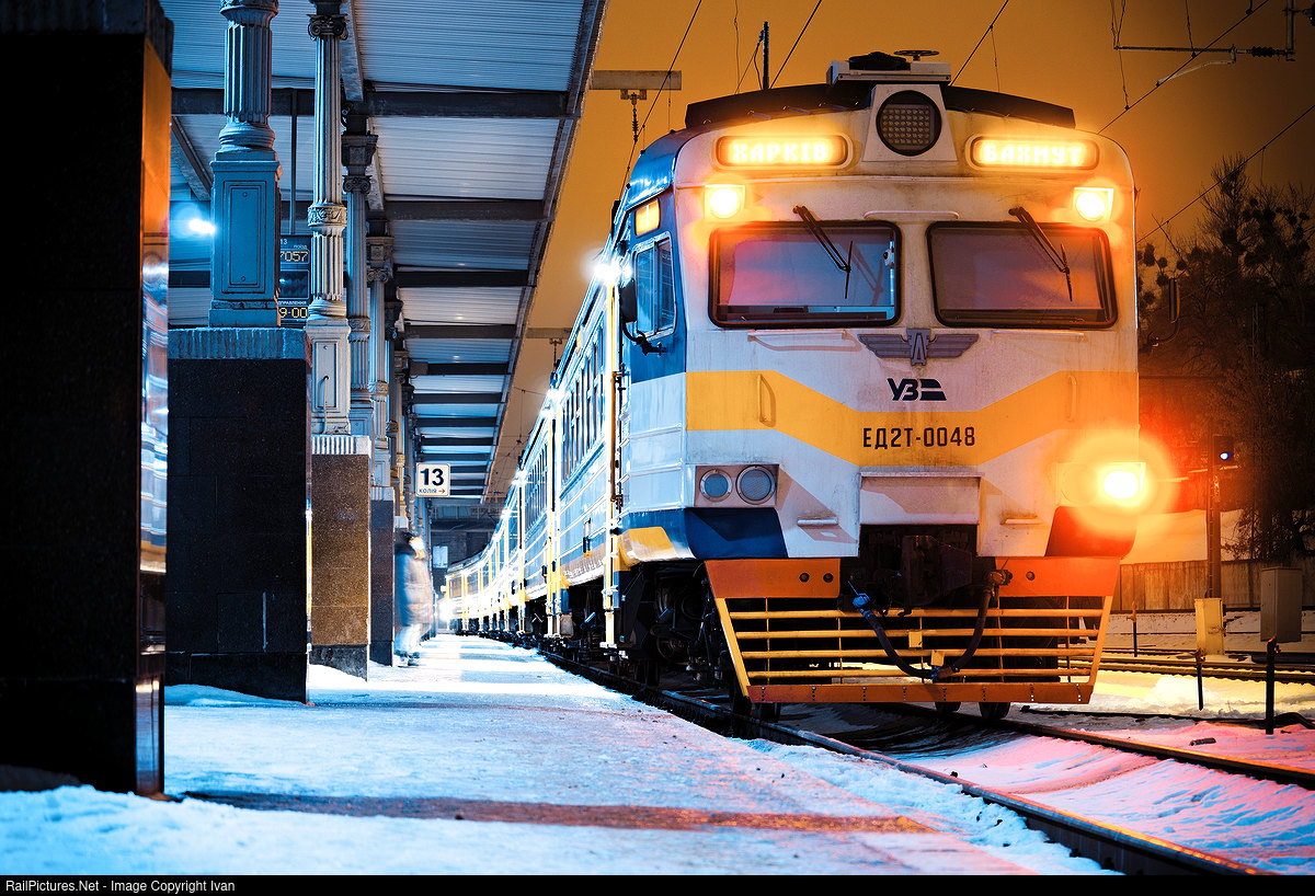 | ED2t-0048 on the Kharkiv-Passazhirskiy station, South railway, Kharkiv, Ukraine. |
