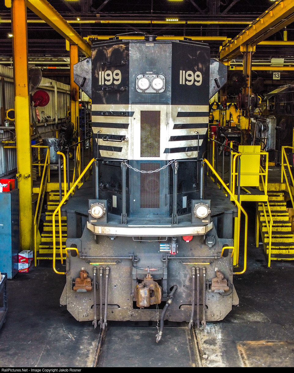 NS 1199 sits in Norfolk Southern's Juniata shops, awaiting repairs.
