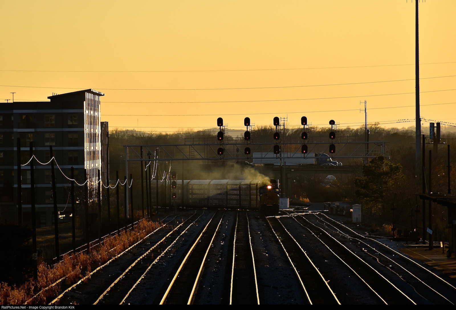 | The sun is beginning to set on Magic City as trains continue to polish the rails from both CSX and Norfolk Southern Railroads. Next up, gliding into the golden light, is CSX train Q202 with huge autoracks in tow. The leading MAC almost goes unnoticed at first, with its ditch lights off and smooth rolling wheels. Soon this northbound is gone and there is another one in line that takes its place on the same rails. |