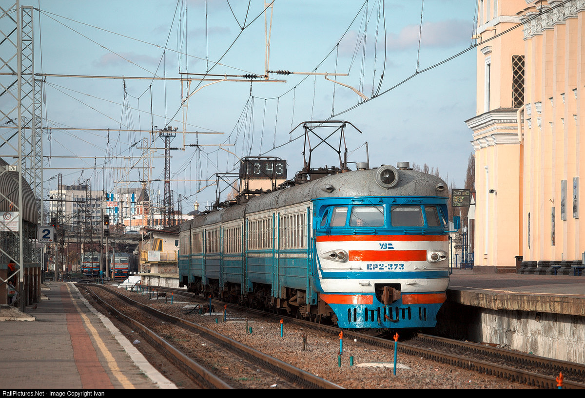 | ER2-373 on the Kharkiv-Passazhirskiy railway station, South railway (Pivd.), Kharkiv, Ukraine. |