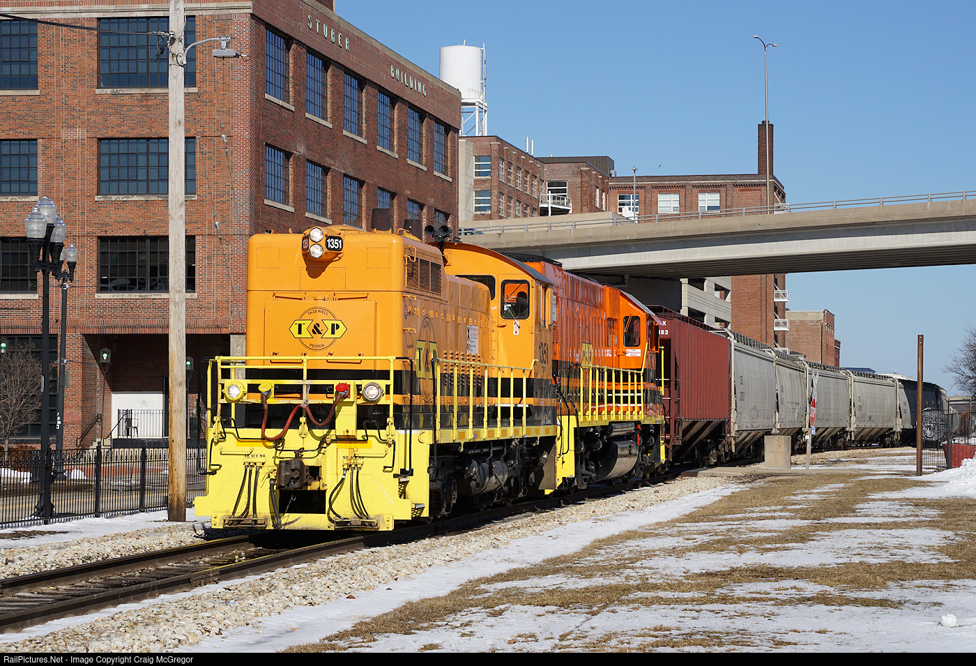 | A TZPR industry job brings Iowa Interstate interchange traffic through Peoria's warehouse district, which is transforming into apartments and shops. |