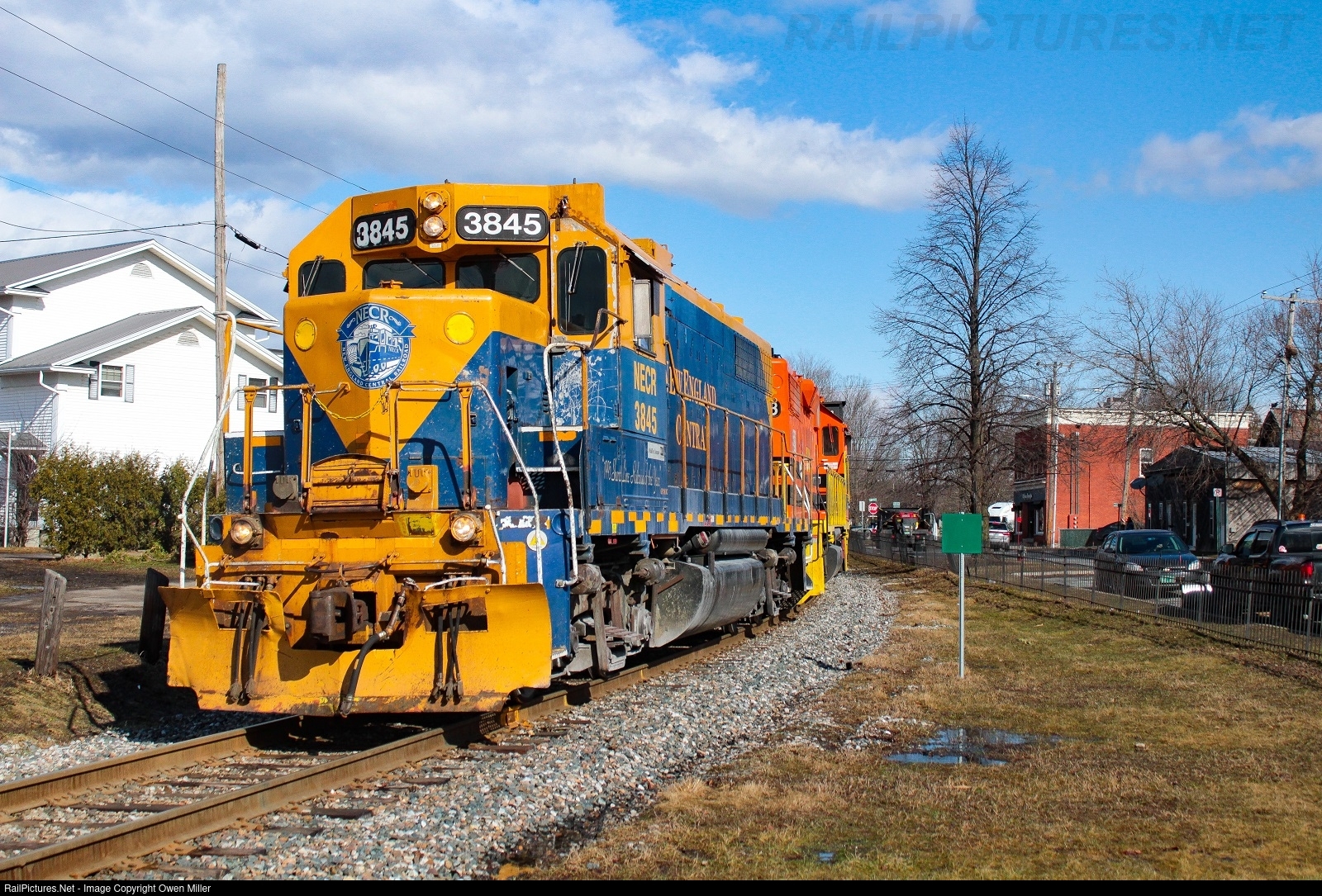 | NECR 3845 has been out of service for quite a while. But on 2/23/2022, it returned to service, wearing 3850's Leslie S5T air horn, and as always looking good. The train is approaching the switch where it'll leave the high iron of the Roxbury sub for a much more scenic 10mph stroll down the Burlington Branch |