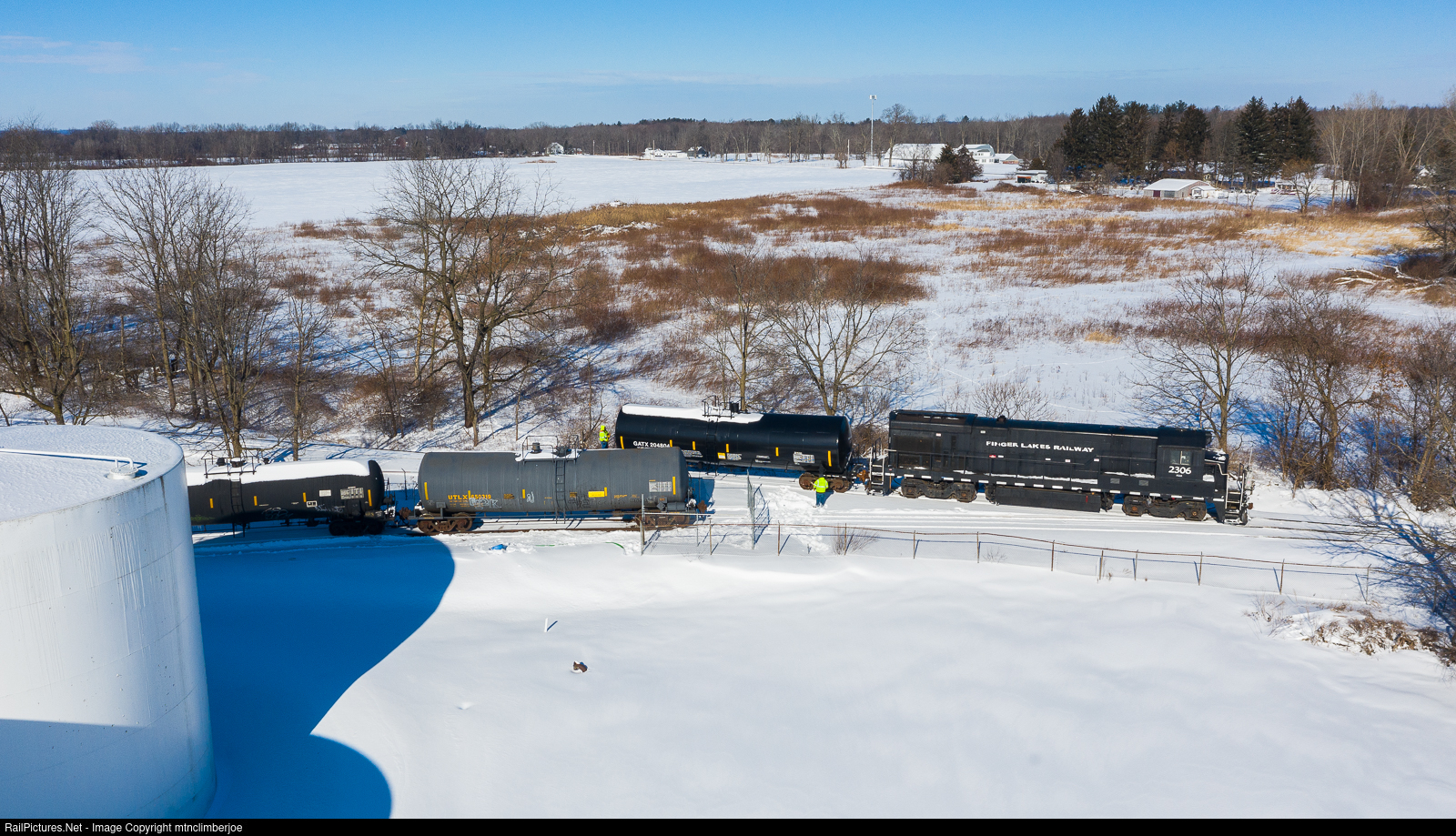 The Finger Lakes Railway's GY-1 yard job out of Geneva, New York has made a short run towards Waterloo with B23-7 2306 to switch out Liquid Products. The crew brought three tanks cars to spot and picked up one before returning to the yard.