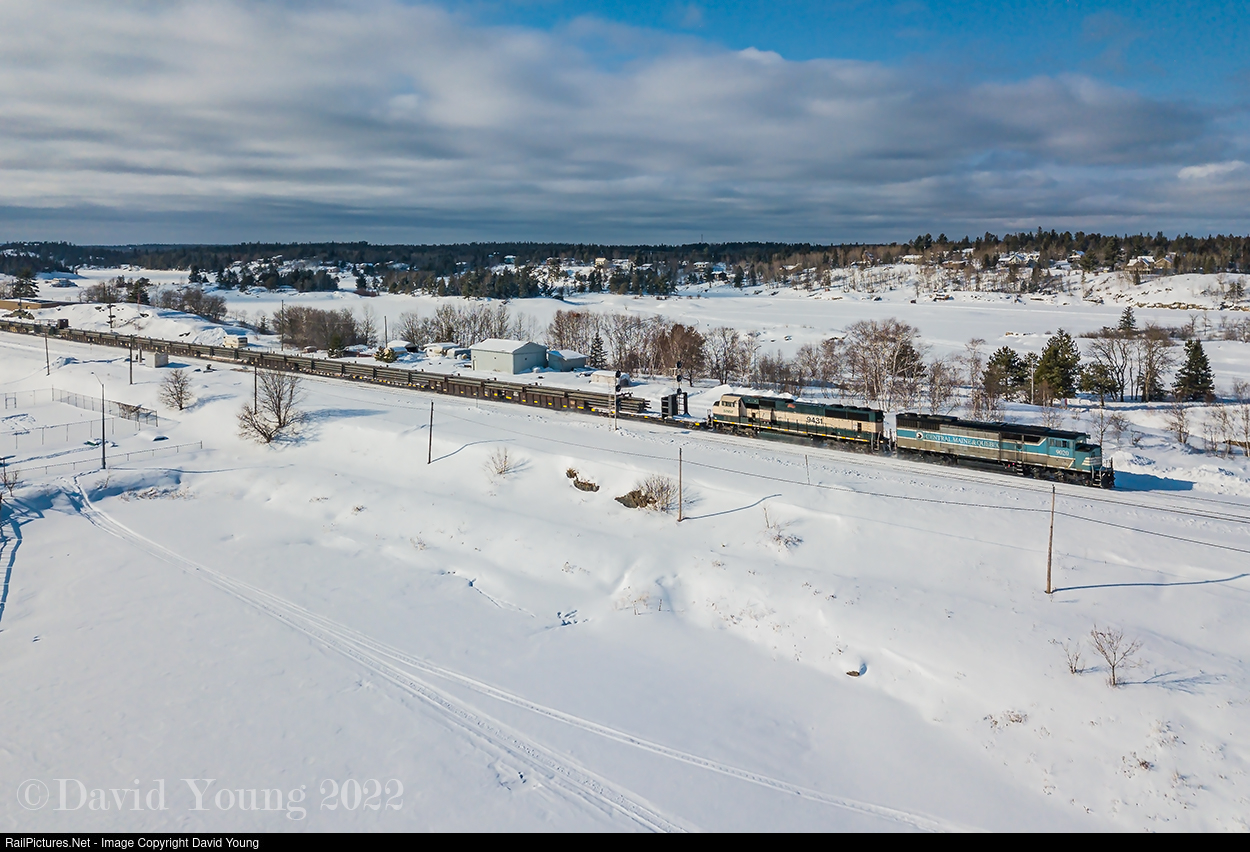 Splitting the signals and splitting waterways, CMQ 9020 East splits the frozen waterways of Lake of the Woods (foreground) and the Winnipeg River (background) as they pass the signals at Keewatin, Ontario with an intriguing visitor trailing... BNSF 9413. Having unloaded rail on the Keewatin, the crew is eastbound approaching Kenora for more paperwork to head out onto the Ignace Sub to dump another string of rail before tying up for the night in the back track at Hawk Lake.