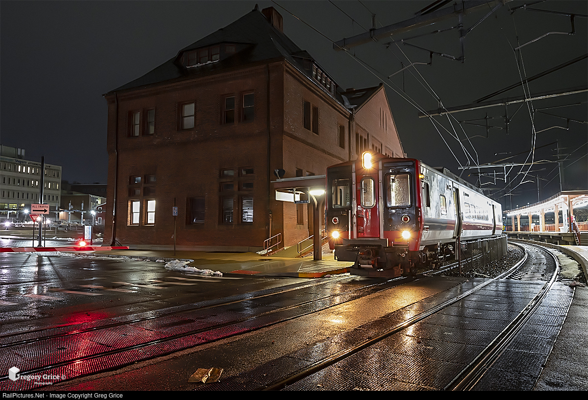 On the morning of March 2nd, 2022, a ConnDOT Shore Line East Test Train consisting of Kawasaki M8 railcars prepares to head west from Track 1 at New London Union Station on Amtrak's "New Haven to Boston" section of the Northeast Corridor. The main purpose of this night's train was to test third rail shoe and platform gap clearances at New London's uniquely curved station. This test marks another step towards M8s running in revenue service on Shore Line East trains.
