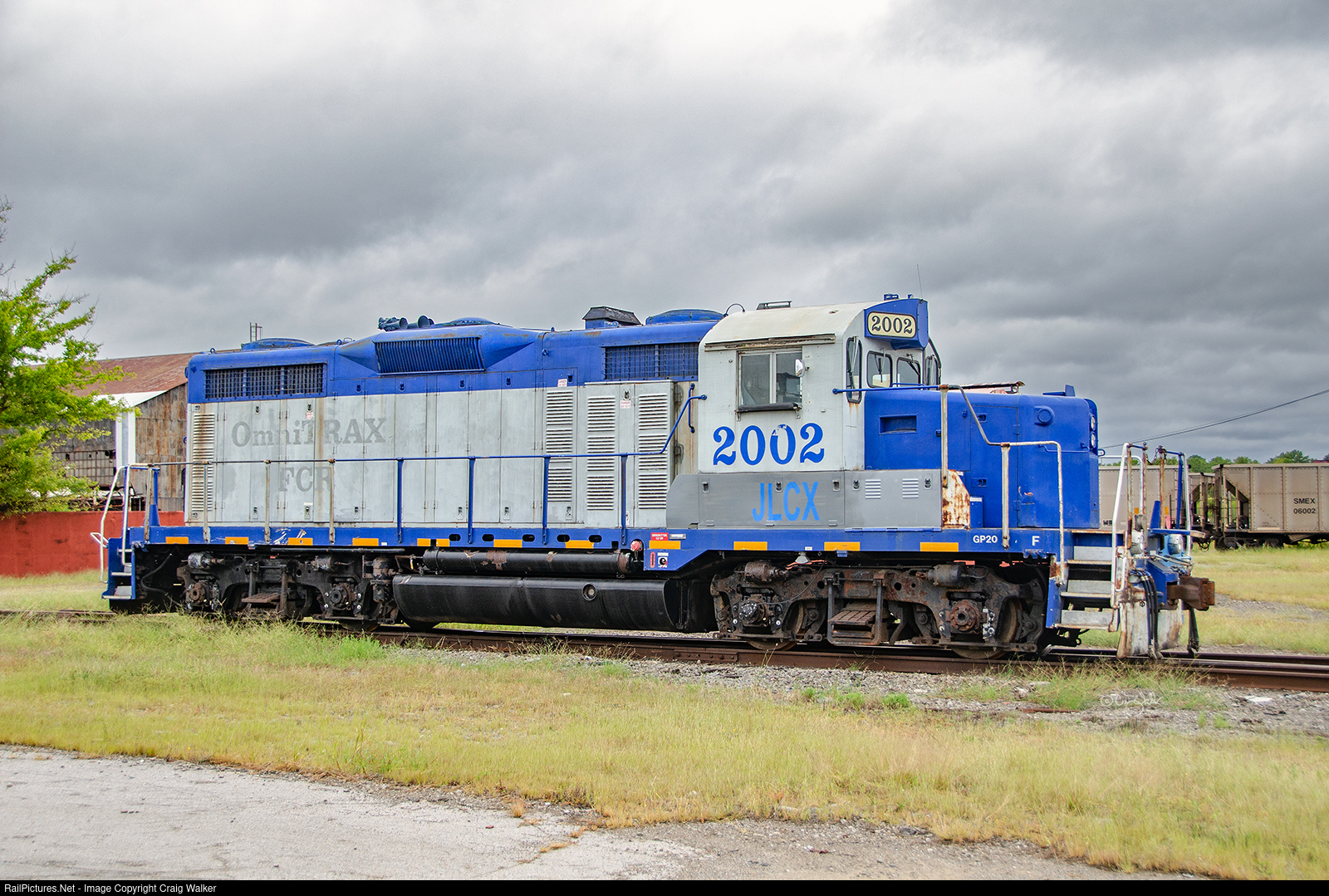 JLCX GP20 2002 was built by EMD in January 1962 as St. Louis Southwestern (Cotton Belt) GP20 816, and when parent company Southern Pacific renumbered their fleet in 1965 it became SSW 4046. When upgraded by SP to a GP20R in June 1979 it became SSW 4135. Retired by the SP on July 15, 1994, the locomotive was sold to locomotive dealer OmniTRAX (OMLX) of Loveland CO on October 25, 1995. OMLX then leased it to their Hudson Bay Railway (HBRY 2505), Central Kansas Railway (CKRY 2505), Fulton County Railway (FCR 2002) and Alabama & Tennessee River Railway (ATN 2002), and then sold to another locomotive dealer, J&L Consulting Ltd. (as JLCX 2002), which stored it the Gadsden Industrial Park in Gadsden, Alabama, where it was photographed on October 1, 2015, Photographed on private property with permission and full PPE.
