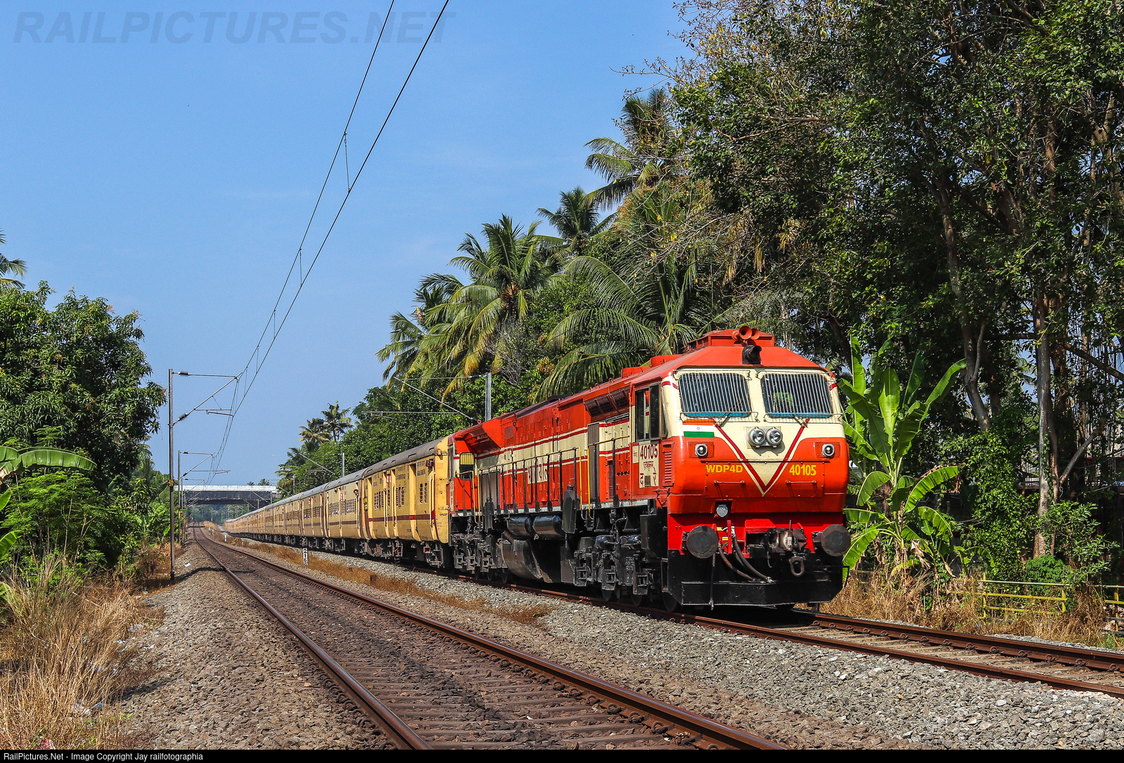 ERNAKULAM WDP-4D, sporting fresh and bright colors of ERNAKULAM shed, powering Vanchinad Express climbing a gradient