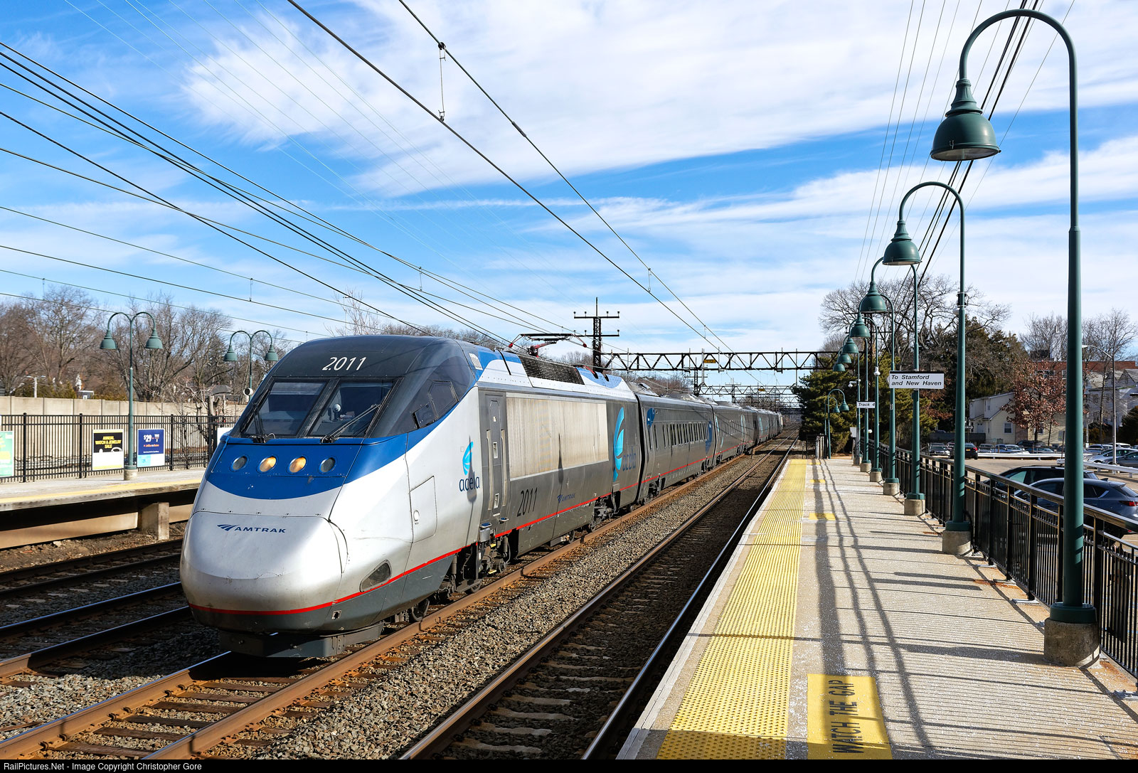 Amtrak Acela 2011 passing through Larchmont station.